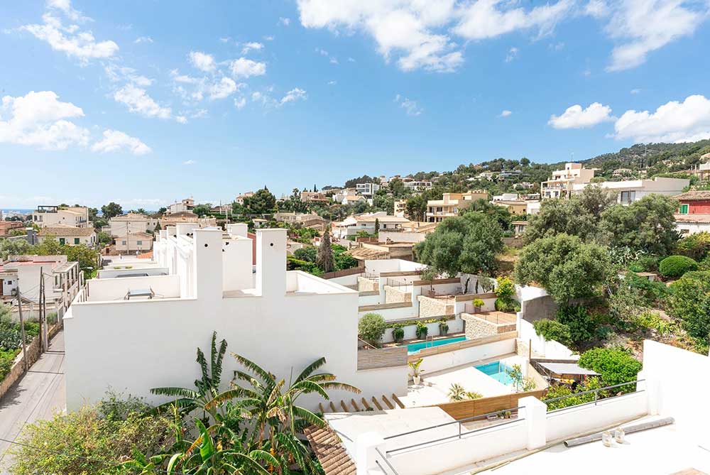 This modern townhouse is located in Genova, a residential area just outside Palma with easy access to the city, Cala Major and Illetas beaches. The setting combines convenience with elevated sea views.