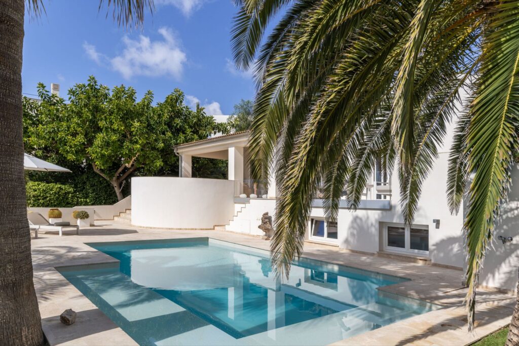 This 5-bed villa is located on a sought-after street in Nova Santa Ponsa. With a build area of 399 sqm on a 1,249 sqm plot, it combines modern comfort, sea views and practical layout on a single main living level.