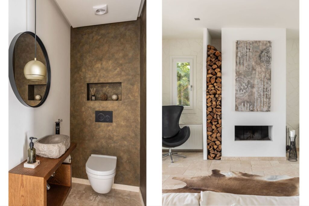 The property includes four bedrooms on the main level, complemented by sleek bathrooms with underfloor heating. A separate guest suite provides independent space for visitors. A guest WC adds everyday convenience.