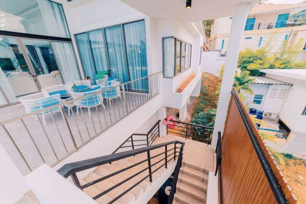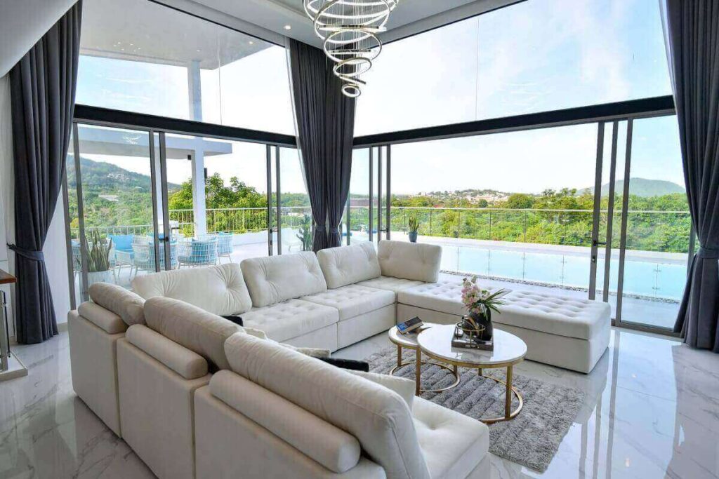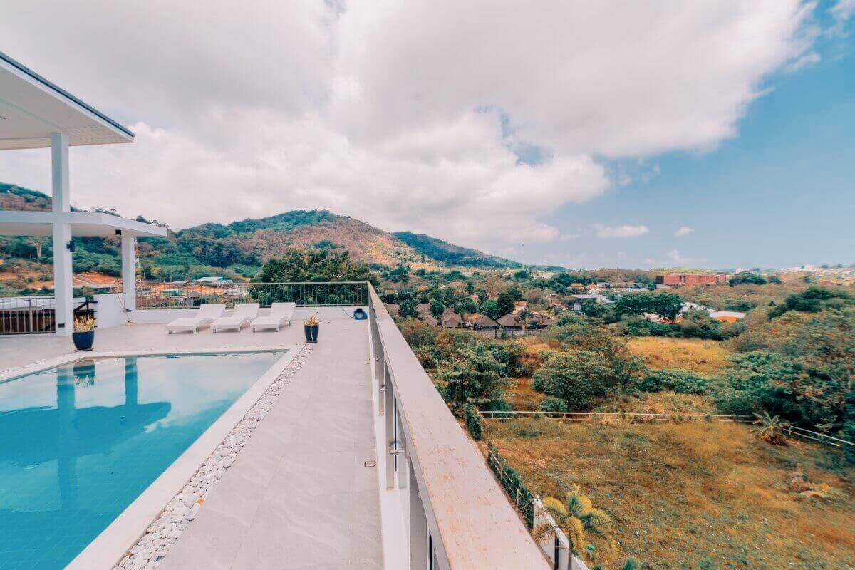 Completed in 2022, this contemporary 4-bedroom, 6-bathroom pool villa occupies a fully fenced hillside plot in Soi Naya, Nai Harn, within a 5 to 10 minute drive of Nai Harn Beach, restaurants, supermarkets, gyms, and everyday amenities. Set on a large 1,590 sqm plot with a built-up area of approximately 690 sqm, the villa is fully furnished and arranged across three storeys, with the pool and main living spaces positioned on the upper level to take advantage of the mountain views.