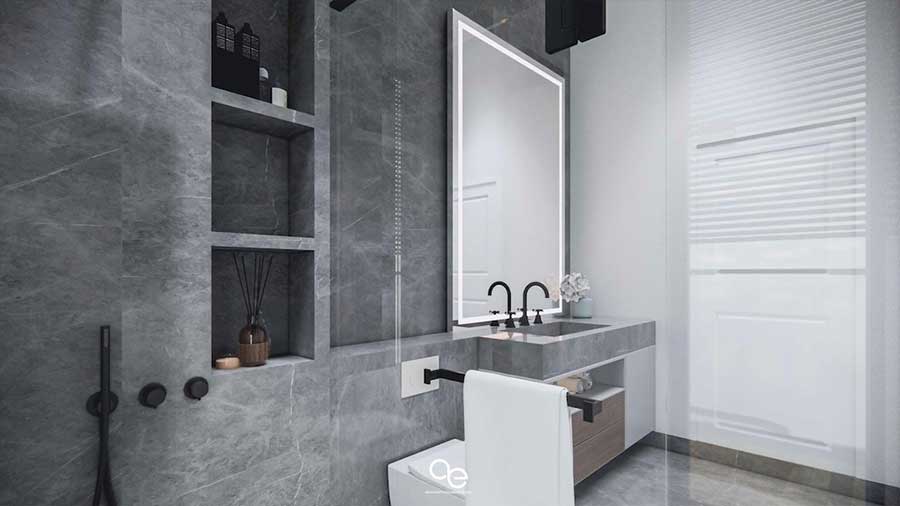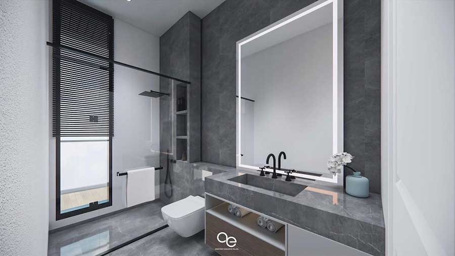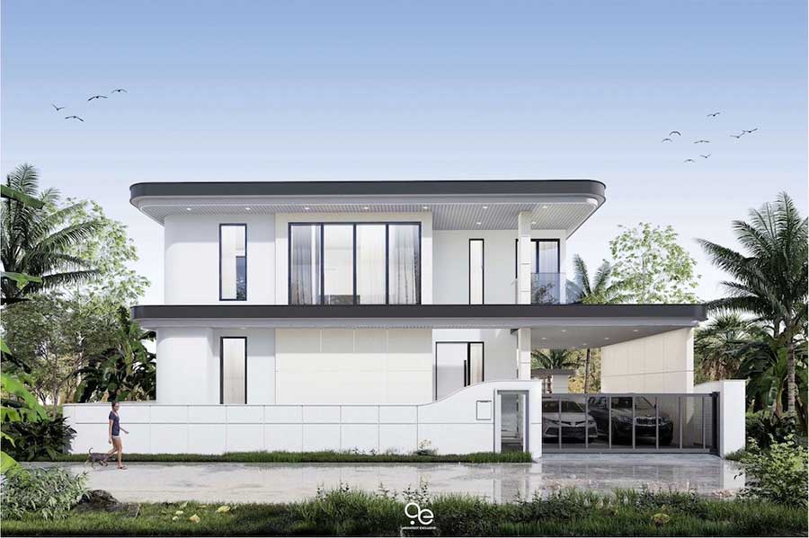 This off-plan modern villa for sale in Bang Por, Koh Samui offers approximately 377 sqm of built-up area set on a 400 sqm land plot, arranged across two floors with partial sea and mountain views. The villa comprises three bedrooms and four bathrooms and is designed for contemporary tropical living in a quiet residential area on Samui’s north coast.