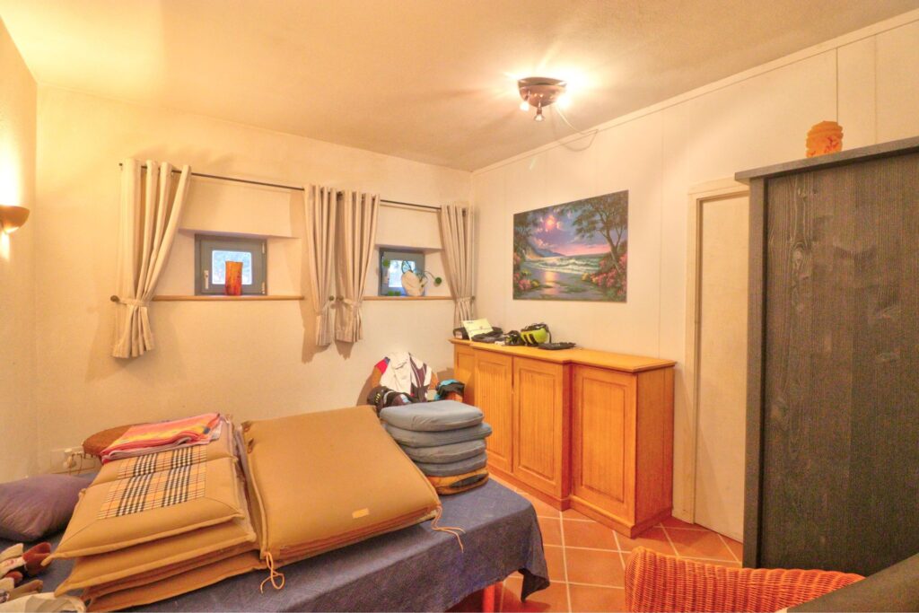 Inside, the construction materials give the property a character that newer builds in the area lack. The living room has original wooden beam ceilings and a large working fireplace, which makes it a practical and comfortable space during the cooler months as well as summer. Natural stone also helps regulate internal temperatures throughout the year, reducing reliance on air conditioning, which is installed throughout.