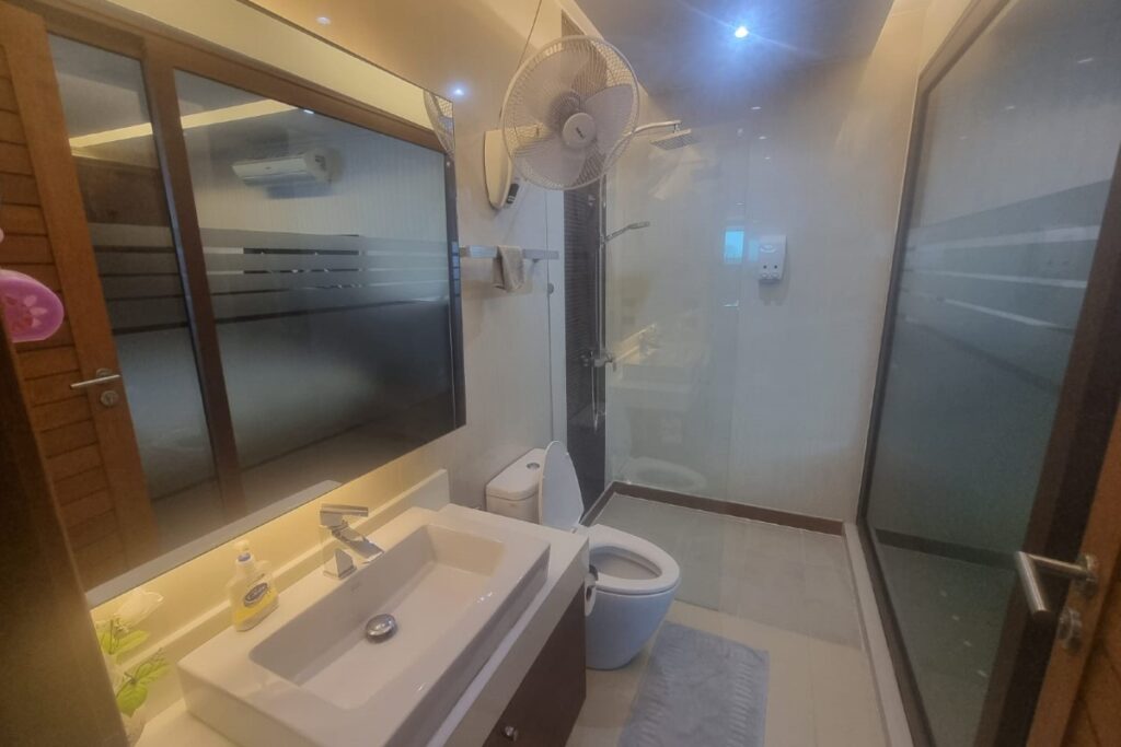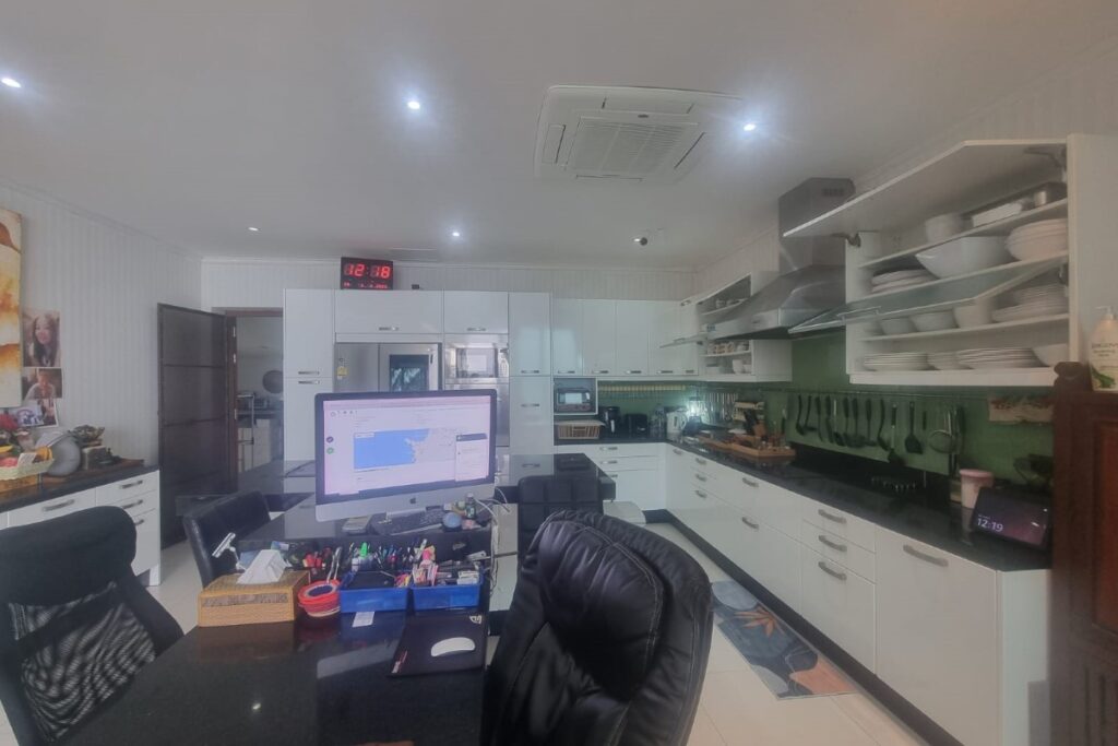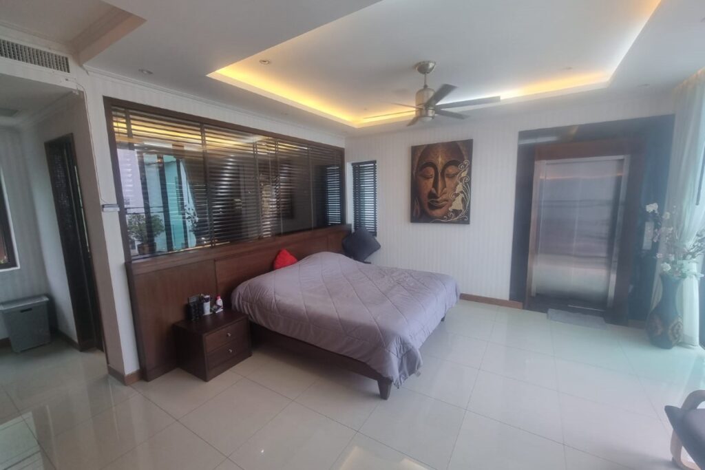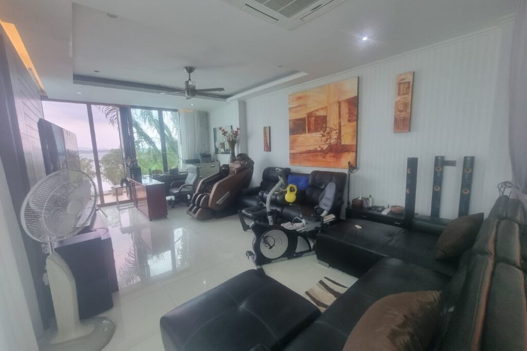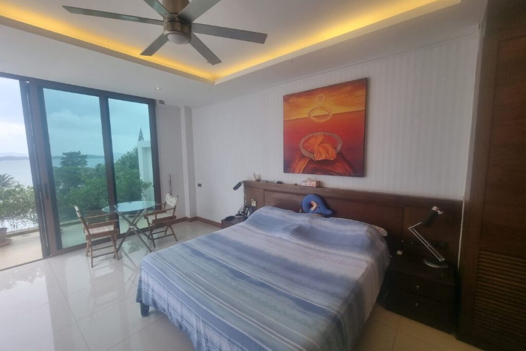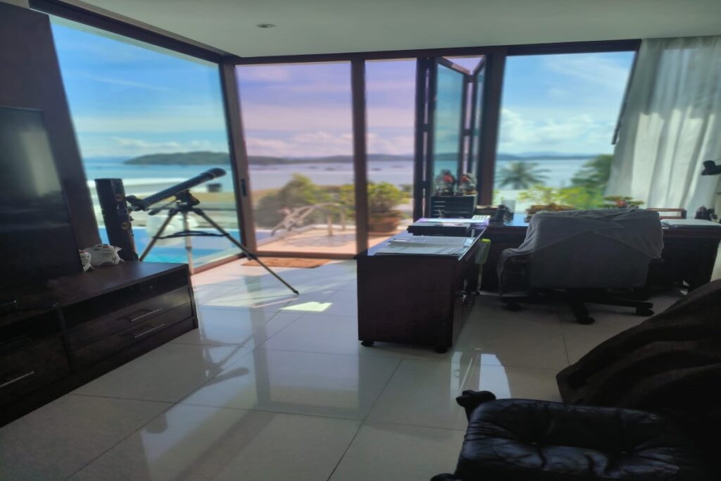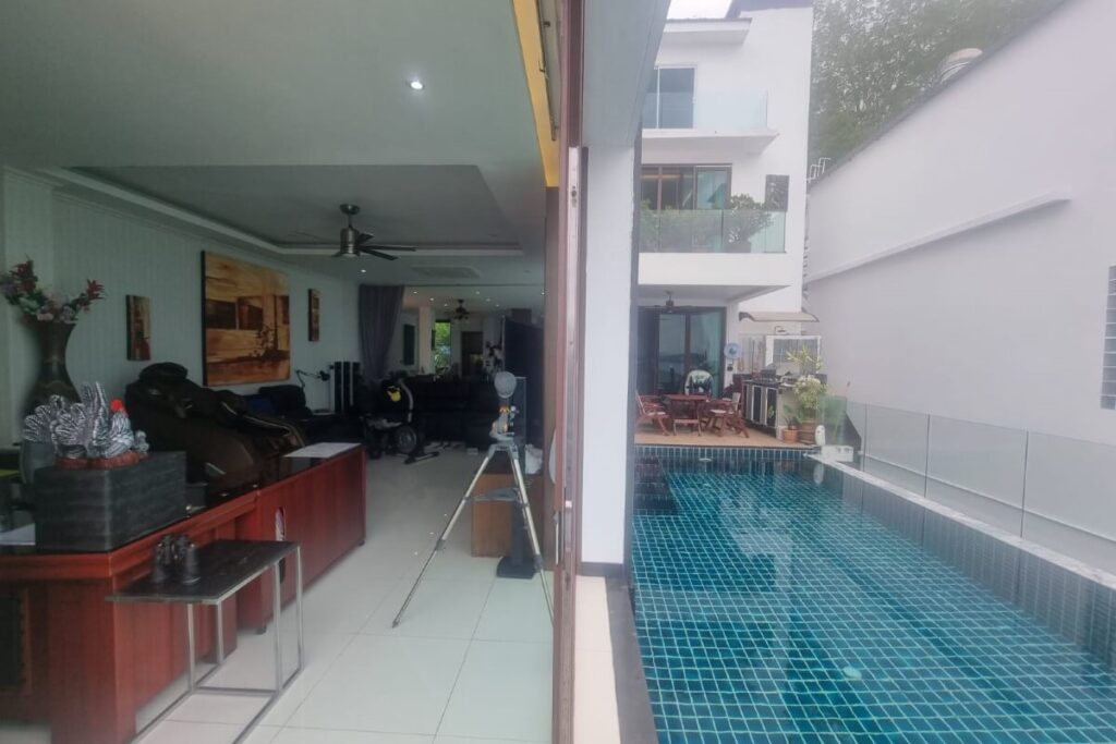 Reduced from THB 45M, this resale 6-bedroom, 6-bathroom sea view pool villa is offered for sale by the owner within a small gated community on a hillside at Ao Po Bay in Pa Klok, approximately 60 metres from the sea. The villa spans 5 storeys with a built-up area of 950 sqm and 600 sqm of interior space, and includes a private lift serving all floors. The property is available freehold or leasehold with no common area or management fees.