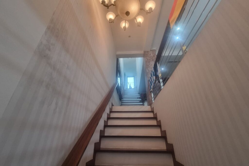 The technical infrastructure is equally thorough, covering 7 landline phones with intercom, 8 remote-control CCTV cameras, 6 motion detectors, hard-wired LAN and wi-fi on all floors, a main water filtration system, 5 mini filtration units for drinking water on every floor, a rainwater recovery system with three tanks totalling 9,000 litres, a 3-phase electrical system, emergency lighting, and a petrol-operated generator.