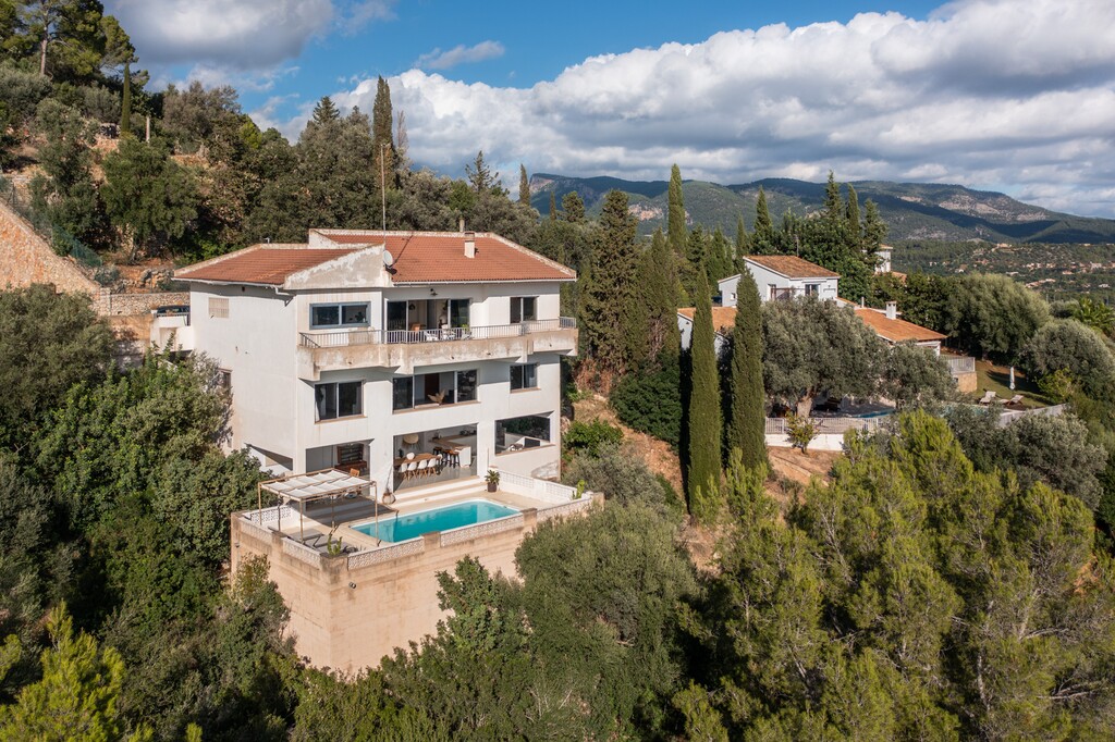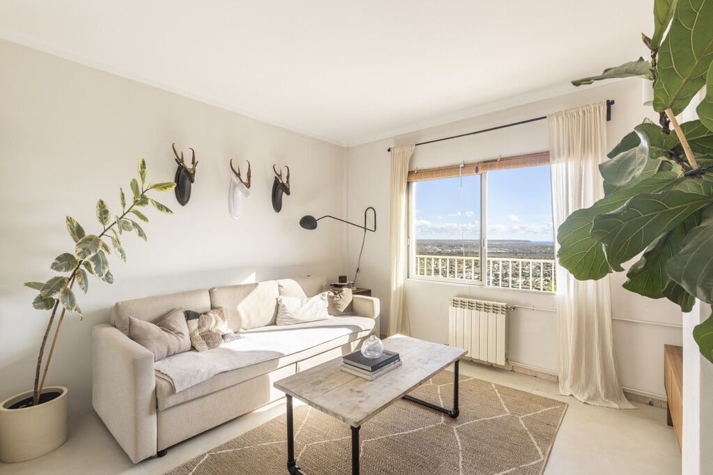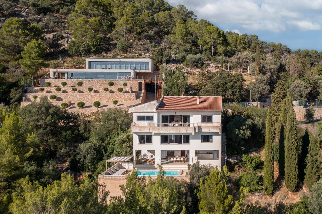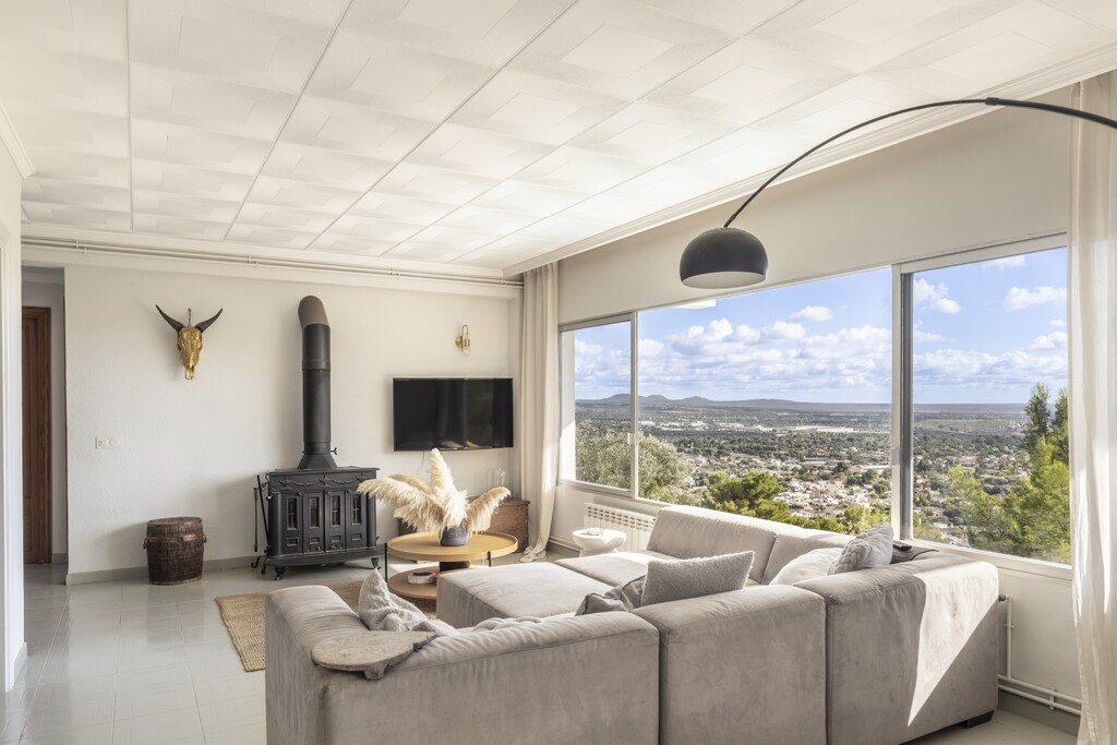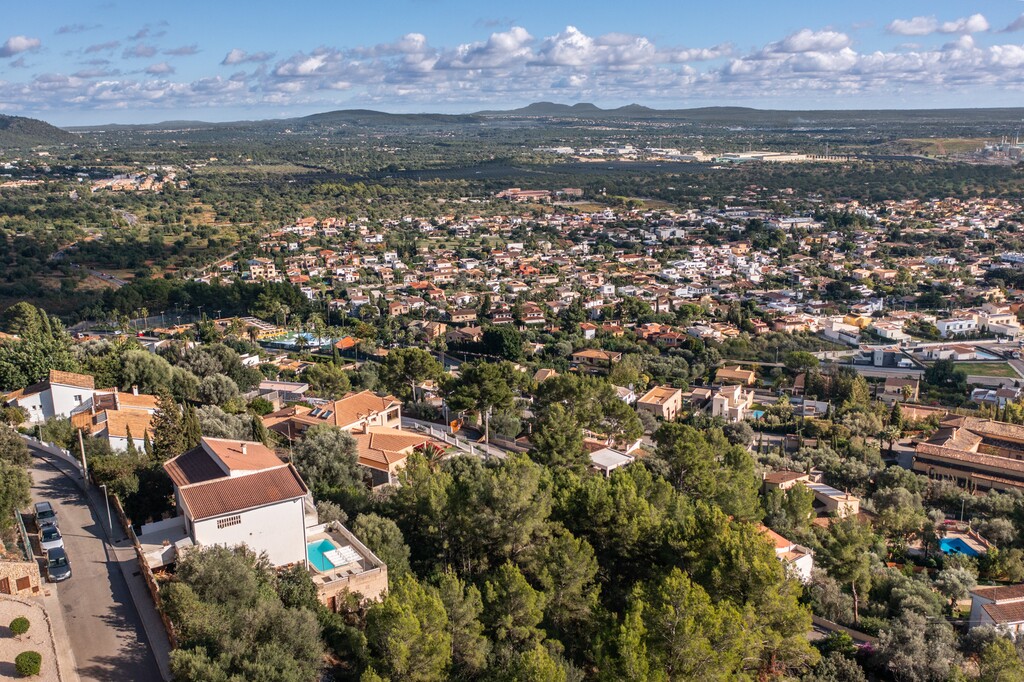 Occupying one of the largest plots on the highest scenic road through the Sa Font Seca area of Palmanyola, this detached five-bedroom villa sits in a south-facing position between Palma and Bunyola with panoramic views across the Bay of Palma. The 2,000 sqm plot extends along the mountainside and the views are visible from most rooms in the house through large picture windows and from multiple terraces at different levels.
