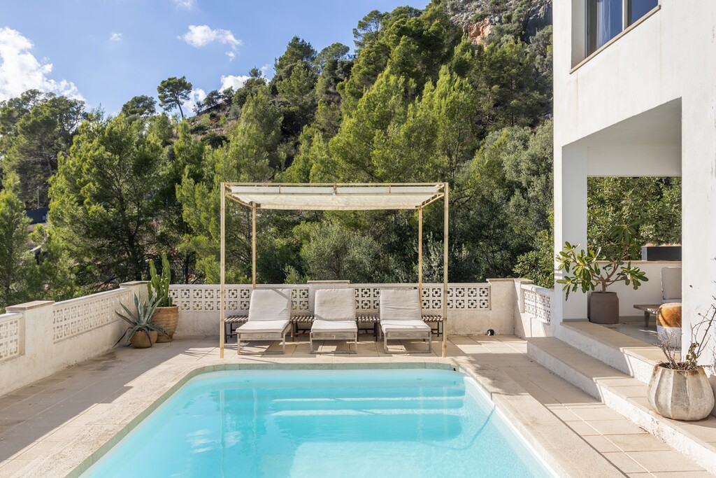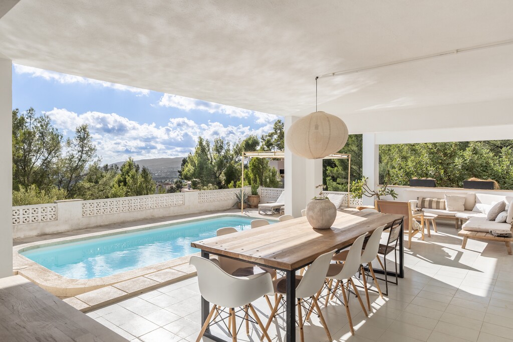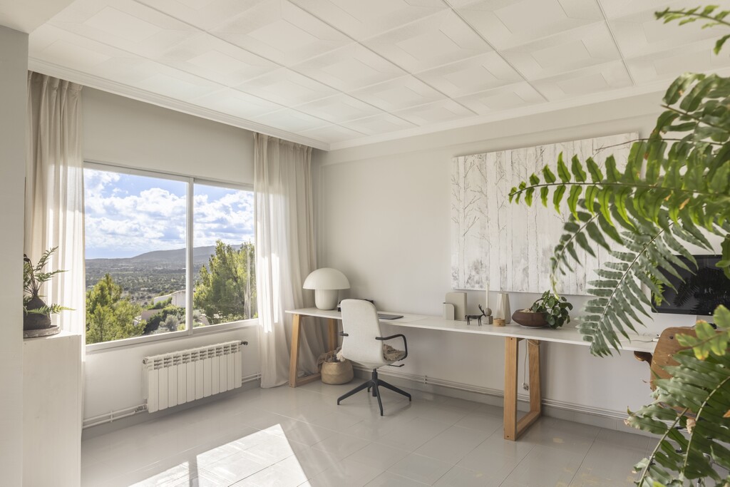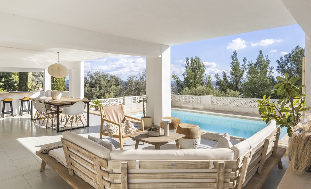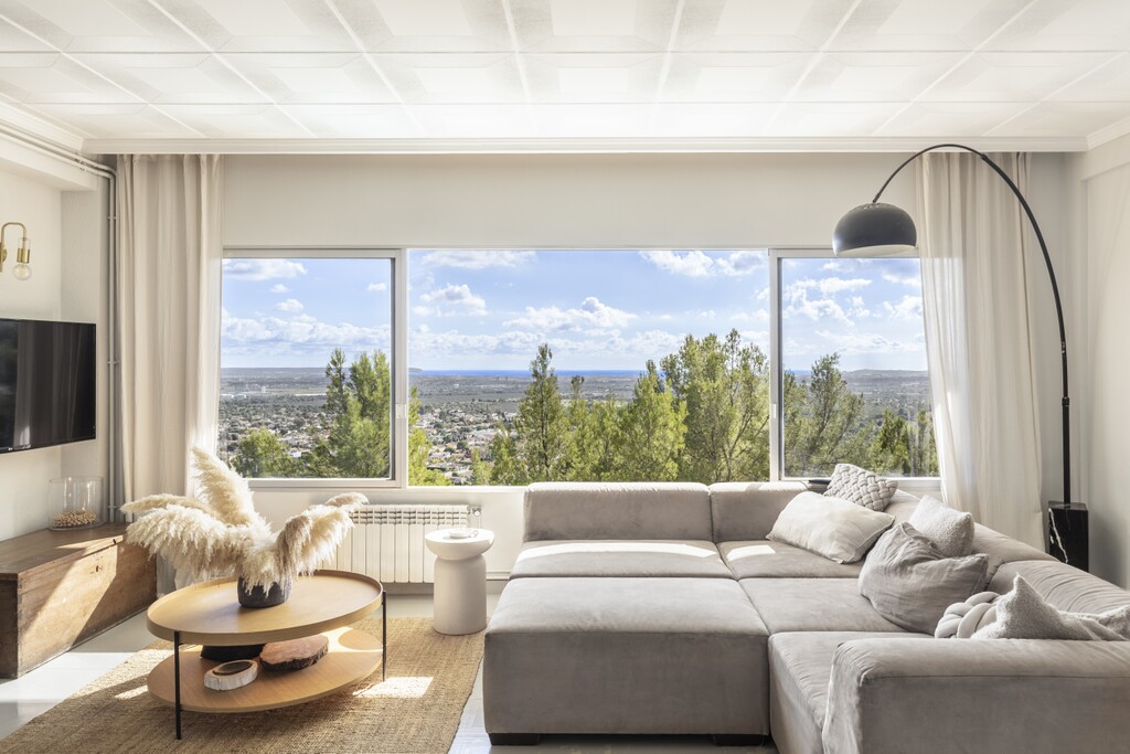 Occupying one of the largest plots on the highest scenic road through the Sa Font Seca area of Palmanyola, this detached five-bedroom villa sits in a south-facing position between Palma and Bunyola with panoramic views across the Bay of Palma. The 2,000 sqm plot extends along the mountainside and the views are visible from most rooms in the house through large picture windows and from multiple terraces at different levels.