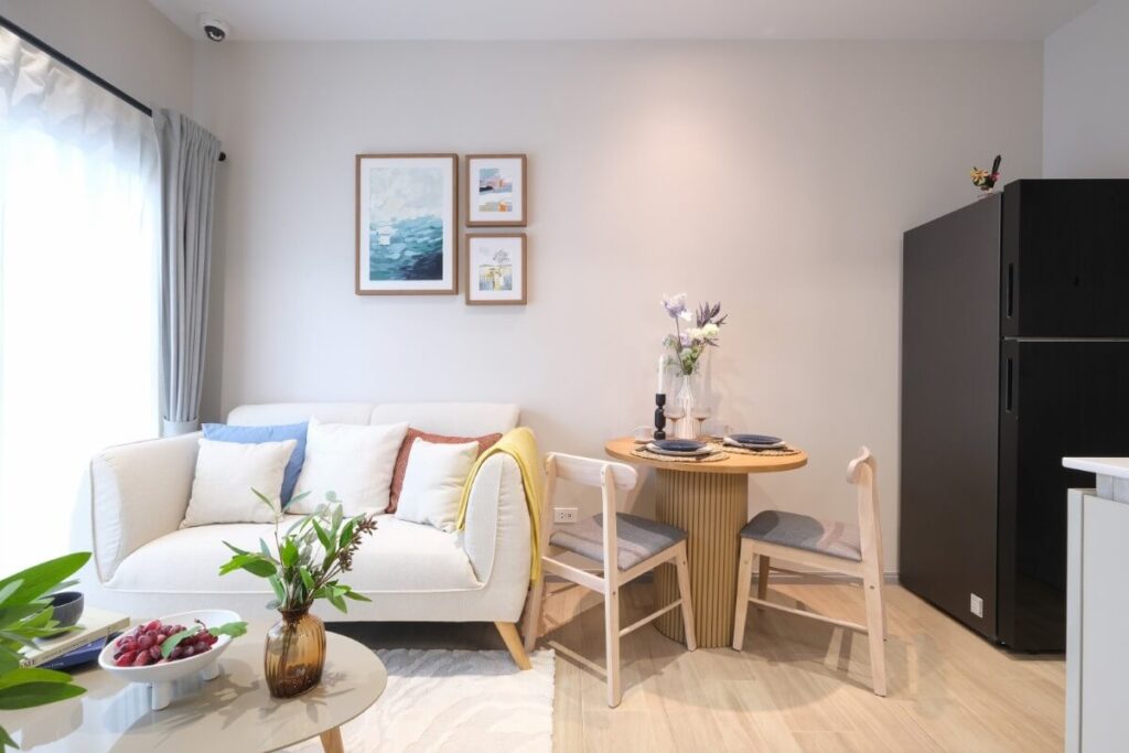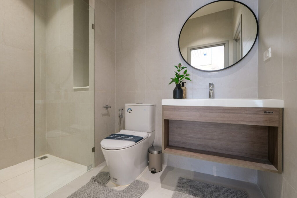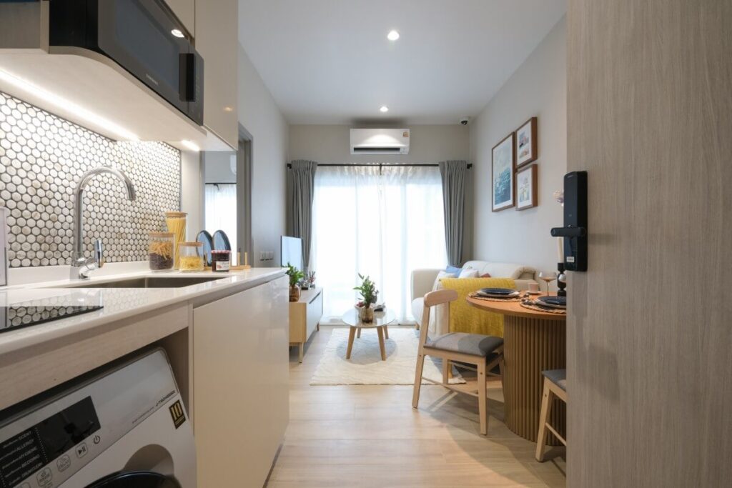 Compact yet functional, the one-bedroom units (26–39 sqm) feature efficient layouts with fitted kitchens and open living areas. The two-bedroom condos (57–65 sqm) provide additional flexibility, with dual bathrooms and larger balconies or optional pool access. All units are finished in a modern, low-maintenance style, making them equally suitable for personal use or investment.