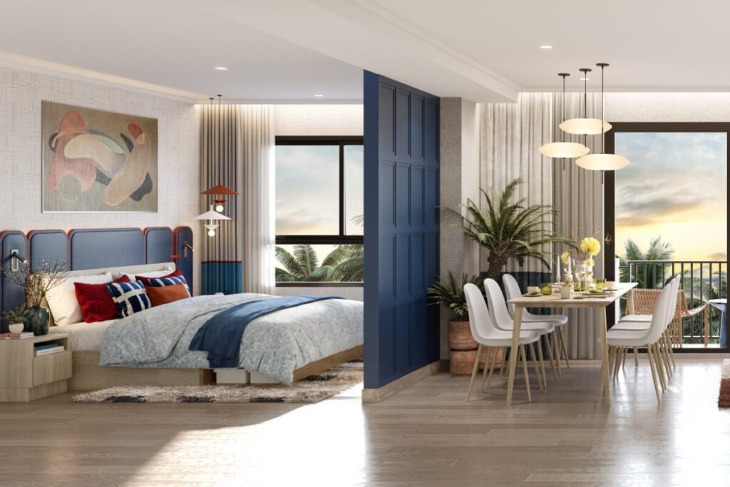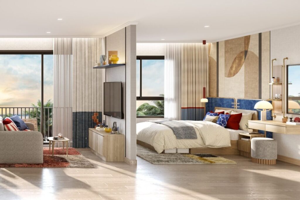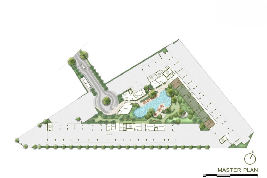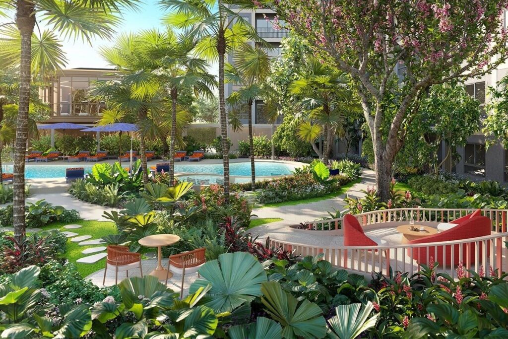 The project comprises two residential buildings rising eight storeys, delivering a total of 341 units. Layouts are designed with clearly defined living and sleeping areas, and selected units feature separate kitchens. Private balconies extend the internal living space, enhancing natural light and ventilation. Certain ground-floor units provide direct pool access, while designated pet-friendly floors and garden-access units accommodate residents with pets.