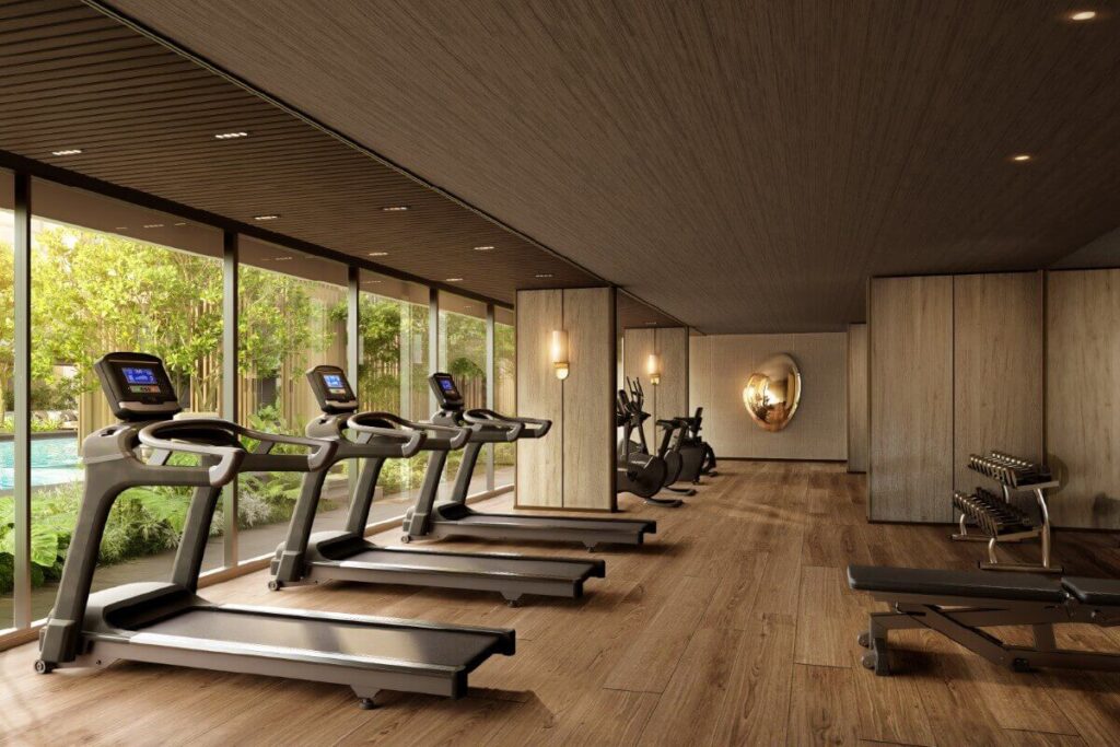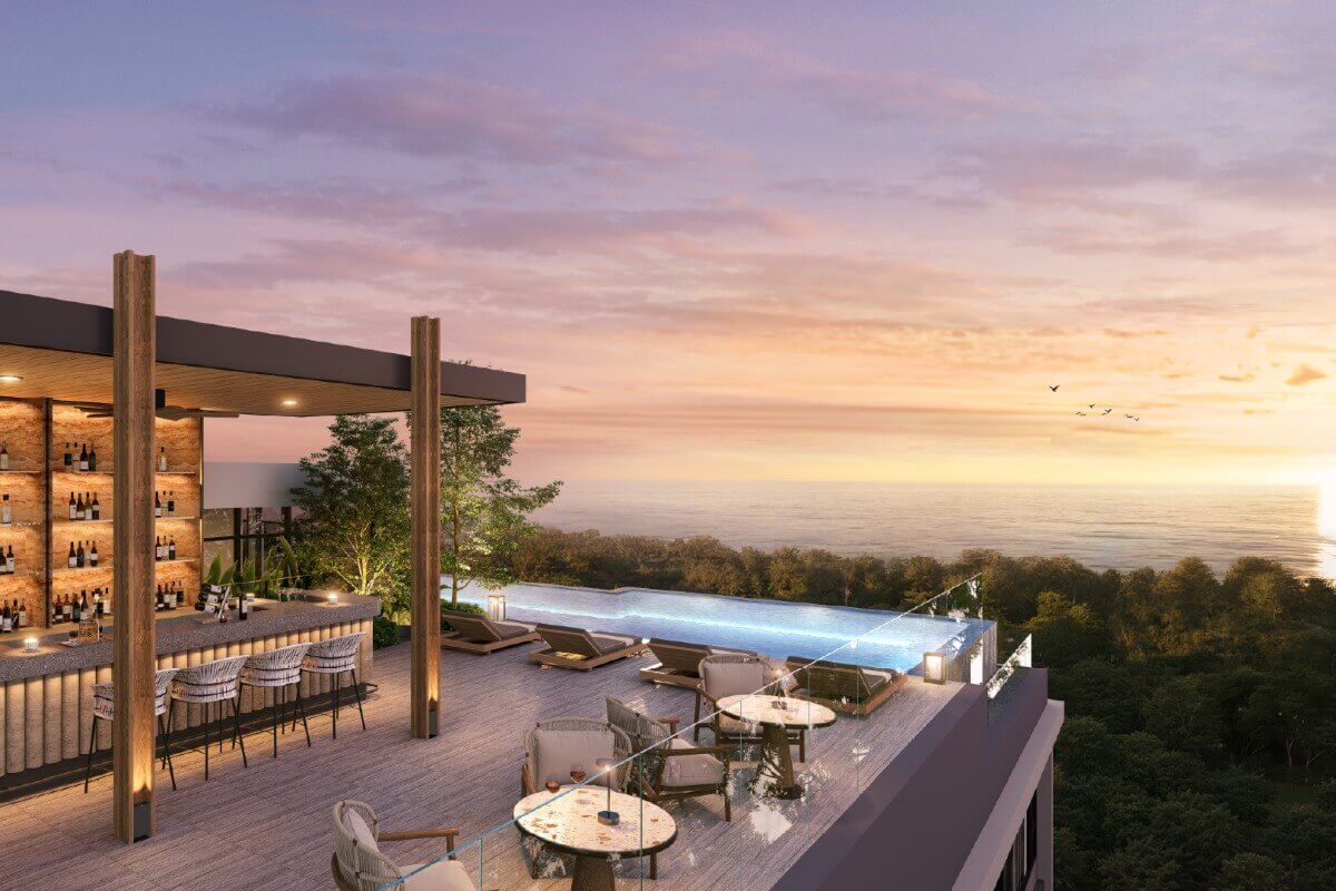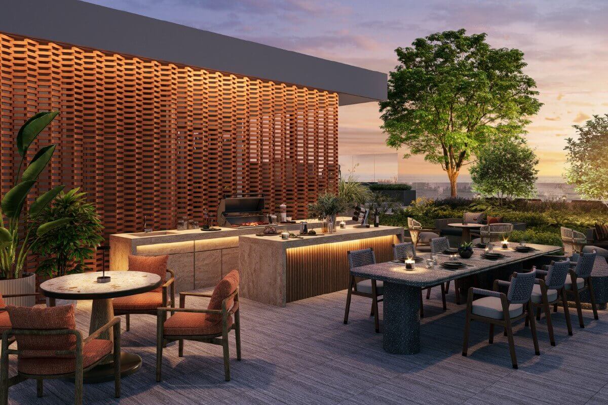 A wide range of shared amenities has been incorporated into the project. Residents have access to an arrival lobby with concierge service, a tropical lobby terrace, social lounges, and club areas with bar facilities. Leisure and wellness amenities include multiple swimming pools across different levels of the development, including heated and cool pools, a rooftop pool and sunset pool bar, and landscaped relaxation areas. Additional facilities include a fully equipped gym, spa, steam room, sauna, serenity pools, a sky grill terrace, and rooftop BBQ areas. Secure parking is provided within the development.