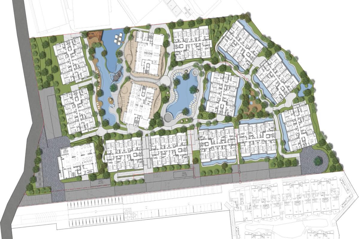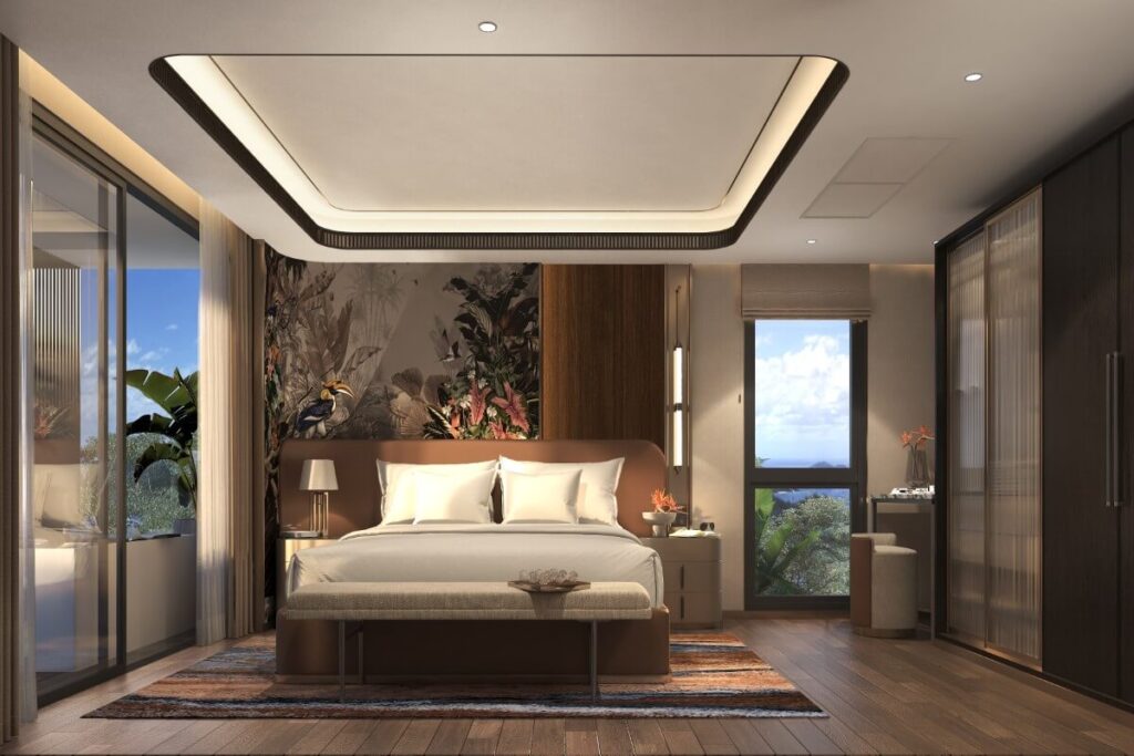 The project comprises 13 low-rise buildings rising five storeys, with a total of 482 units across both resort and private residential components. Of these, 228 units are designated as private residences, while 254 units form part of the resort inventory. The 1-bedroom residences range from 42 to 65 sqm, with select units offering pool access or balconies facing garden, lake or sea views. Two-bedroom residences range from 110 to 112 sqm and include larger balcony spaces, with upper-floor units benefiting from panoramic sea views.