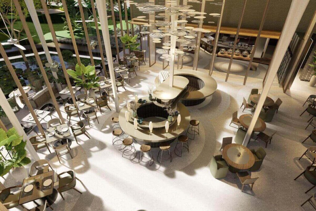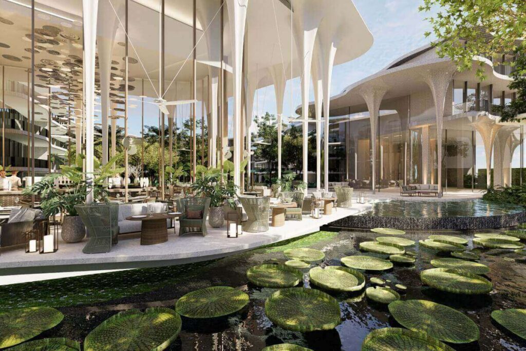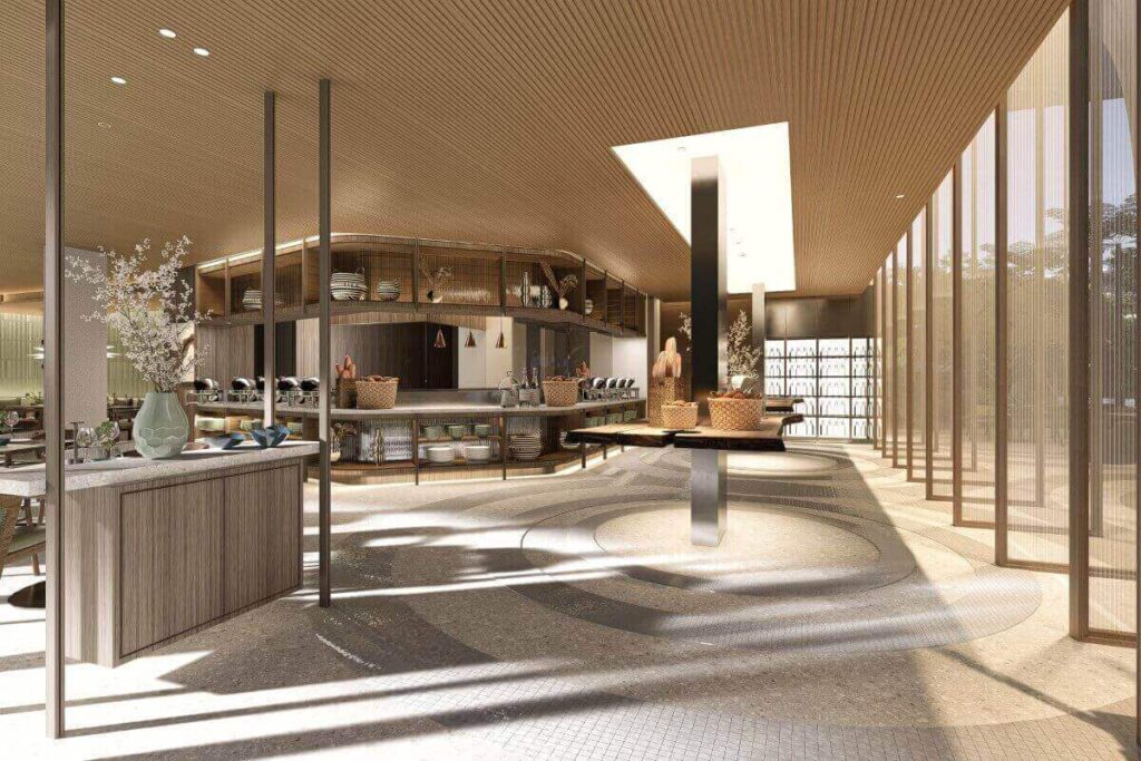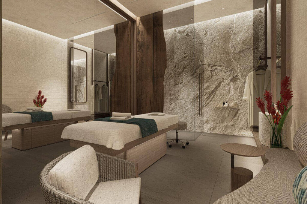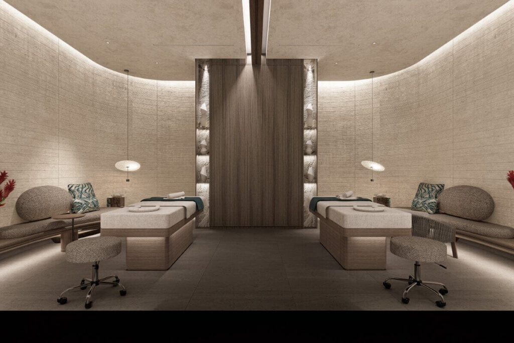 Facilities are designed around wellness and leisure. Residents enjoy access to multiple pools, hydrotherapy areas with hot and cold baths, sauna and steam rooms, and ice fountains. A dedicated beachfront club features a lap pool, party pool, and bar with all-day dining. Additional amenities include a spa, fitness centre, landscaped gardens, and communal leisure areas.