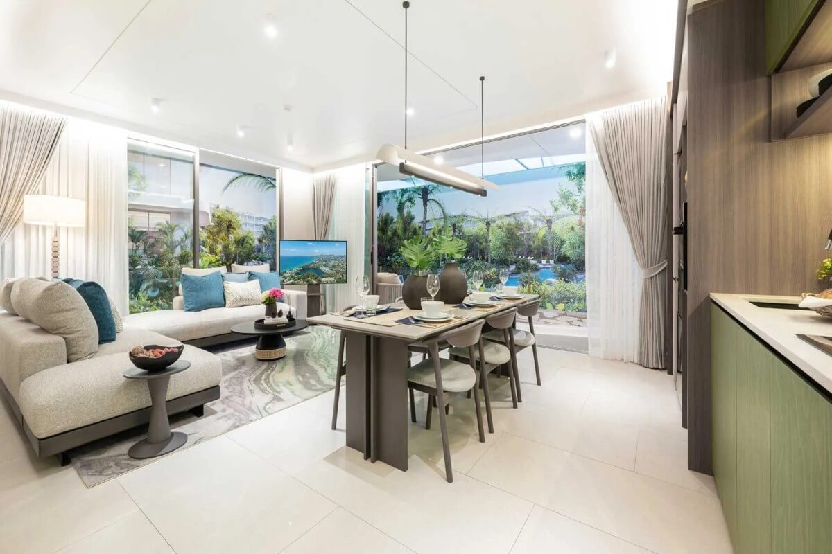 Positioned on Bang Tao Beach within Laguna Phuket, one of Asia’s most established integrated resort destinations, the development offers direct beachfront access with nearby five-star resorts, golf, and dining options. Boat Avenue and Porto de Phuket are within 5–10 minutes, while HeadStart International School and Blue Tree Phuket are around 10 minutes away. Phuket International Airport is approximately a 35-minute drive.