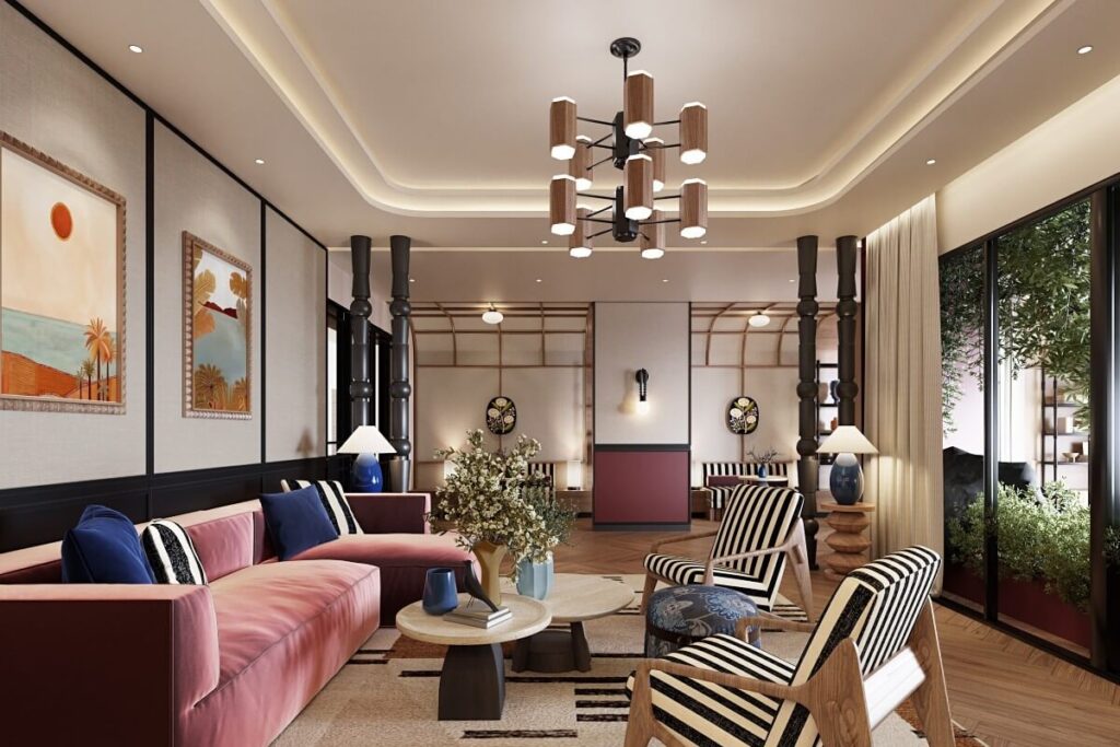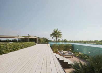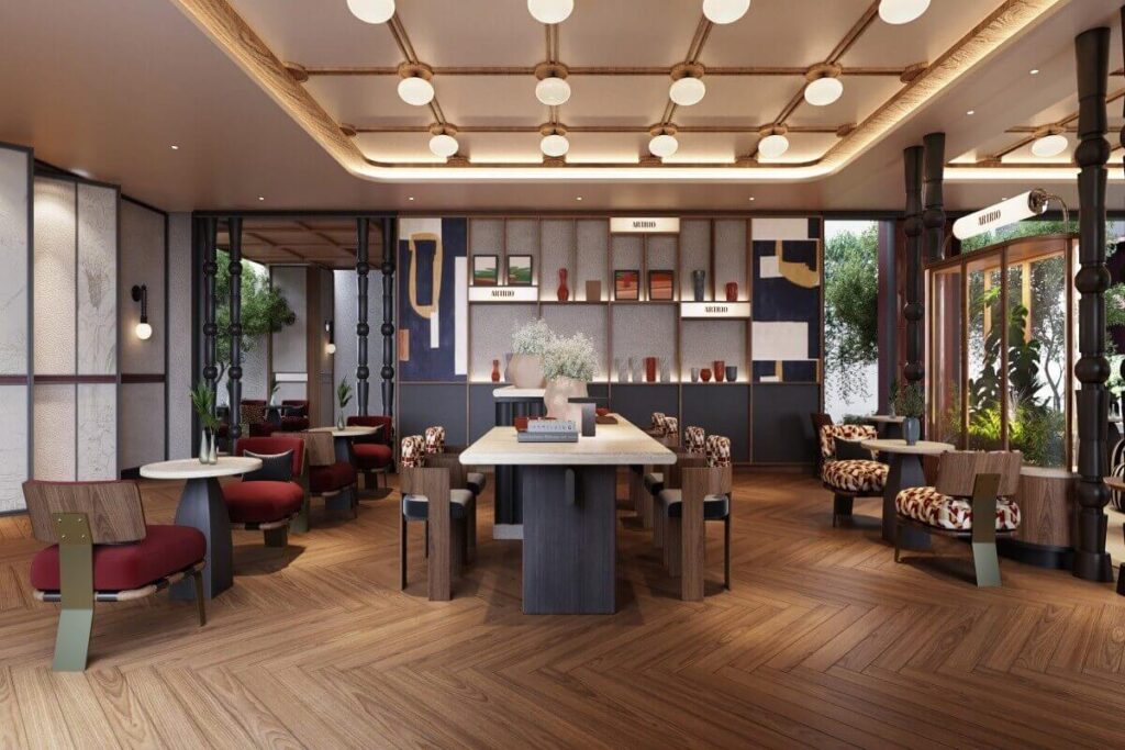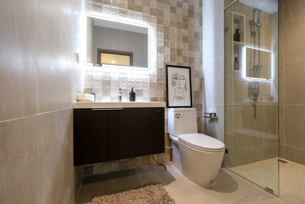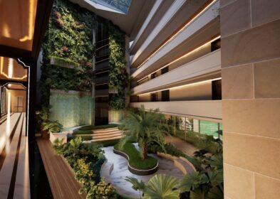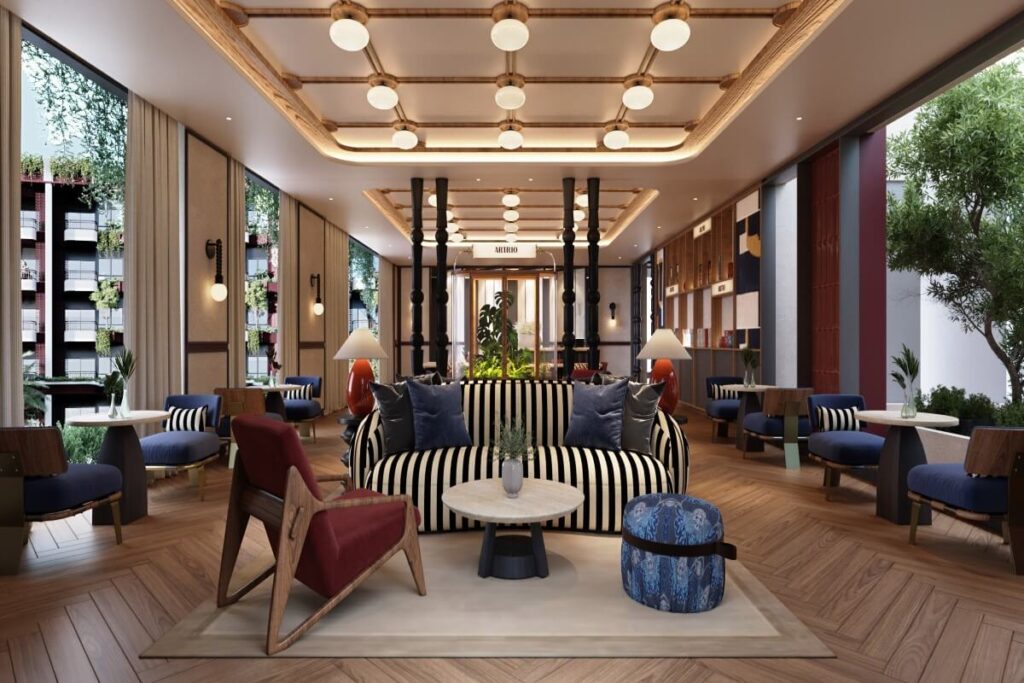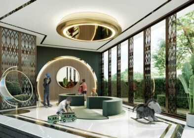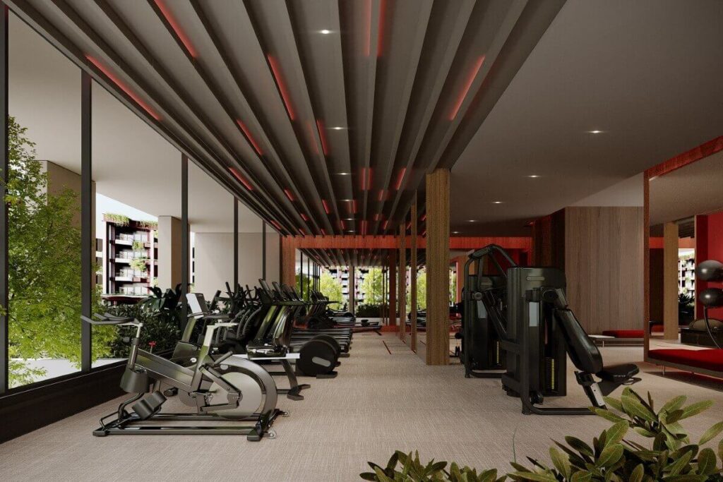 The development stands out for its extensive facilities. Residents have access to 19 indoor and 22 outdoor amenities, including multiple swimming pools for adults, children, and pets. A fitness centre, onsen, boxing area, golf simulator, cinema, and co-working spaces add real depth to the lifestyle offering. The landscaped grounds incorporate floating terraces, waterfall features, and outdoor recreation areas designed for both relaxation and community interaction.