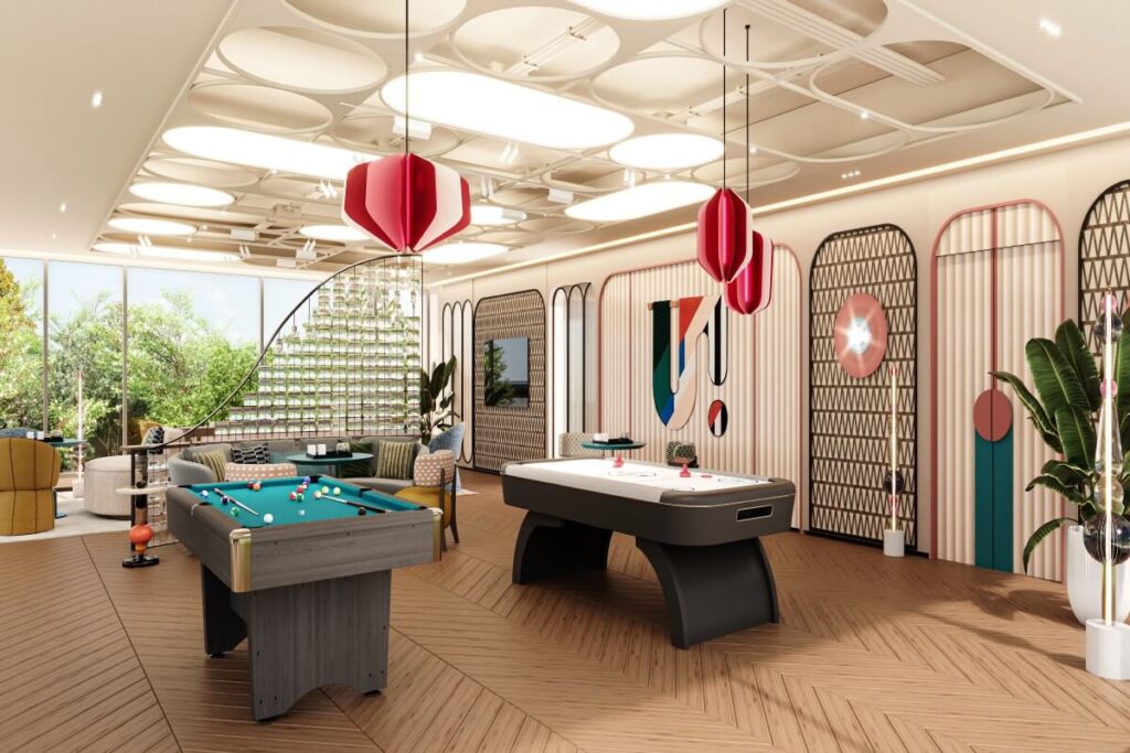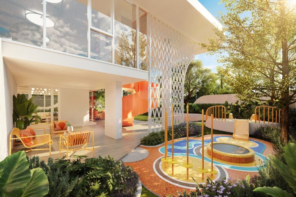 The project offers 20 lifestyle amenities, including a rooftop lap pool with sun deck and cabanas, a fitness centre, steam room, and health corner. Communal spaces such as co-working lounges, game zones, a café, and a cinema area encourage social connection, while outdoor gardens, lawns, and semi-open lounges promote a relaxed coastal lifestyle. Families also benefit from dedicated play zones and flexible shared areas.