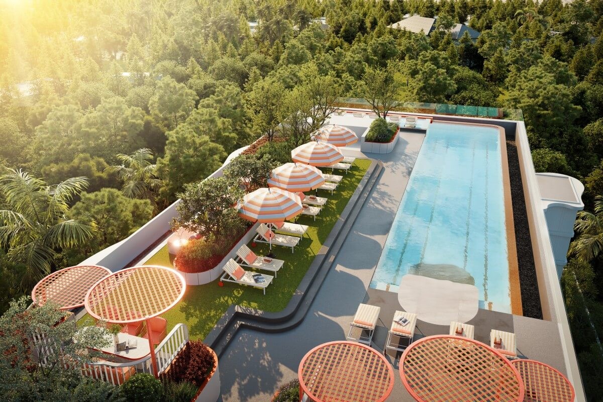 The project offers 20 lifestyle amenities, including a rooftop lap pool with sun deck and cabanas, a fitness centre, steam room, and health corner. Communal spaces such as co-working lounges, game zones, a café, and a cinema area encourage social connection, while outdoor gardens, lawns, and semi-open lounges promote a relaxed coastal lifestyle. Families also benefit from dedicated play zones and flexible shared areas.