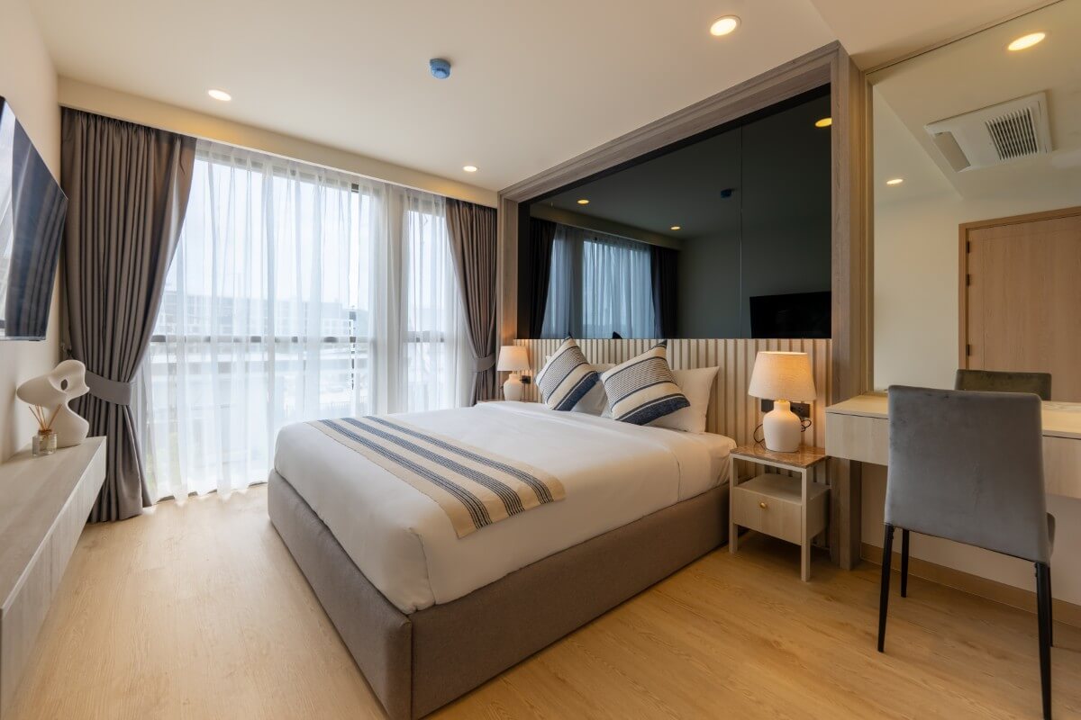 Developed by a Phuket-based company with a strong record in residential and hospitality projects, the master plan includes 908 condominiums divided across three phases. Phase 1 is completed and ready to move in, while Phase 2 and Phase 3 are under construction with completion due in 2026 and 2027 respectively. The final phase will add hotel-managed residences under the Wyndham brand.
