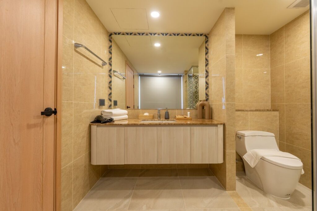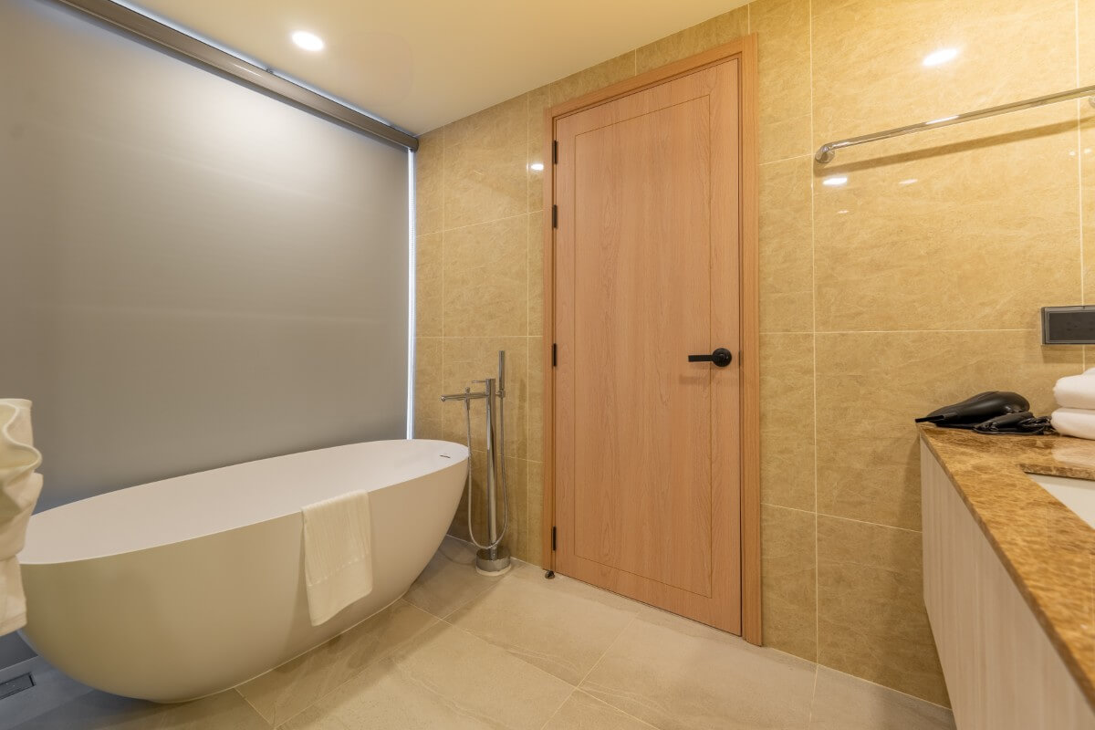 The 88 sqm residences are bright and spacious, featuring open-plan living and dining areas that connect to private balconies overlooking tropical gardens or the golf course. Interiors use light natural tones, soft textures, and practical layouts that maximise comfort and flexibility.
