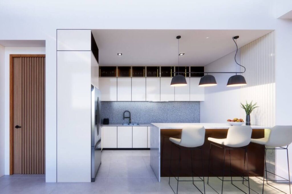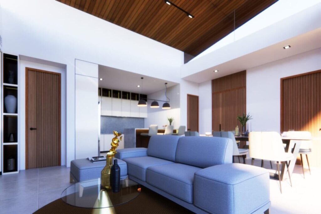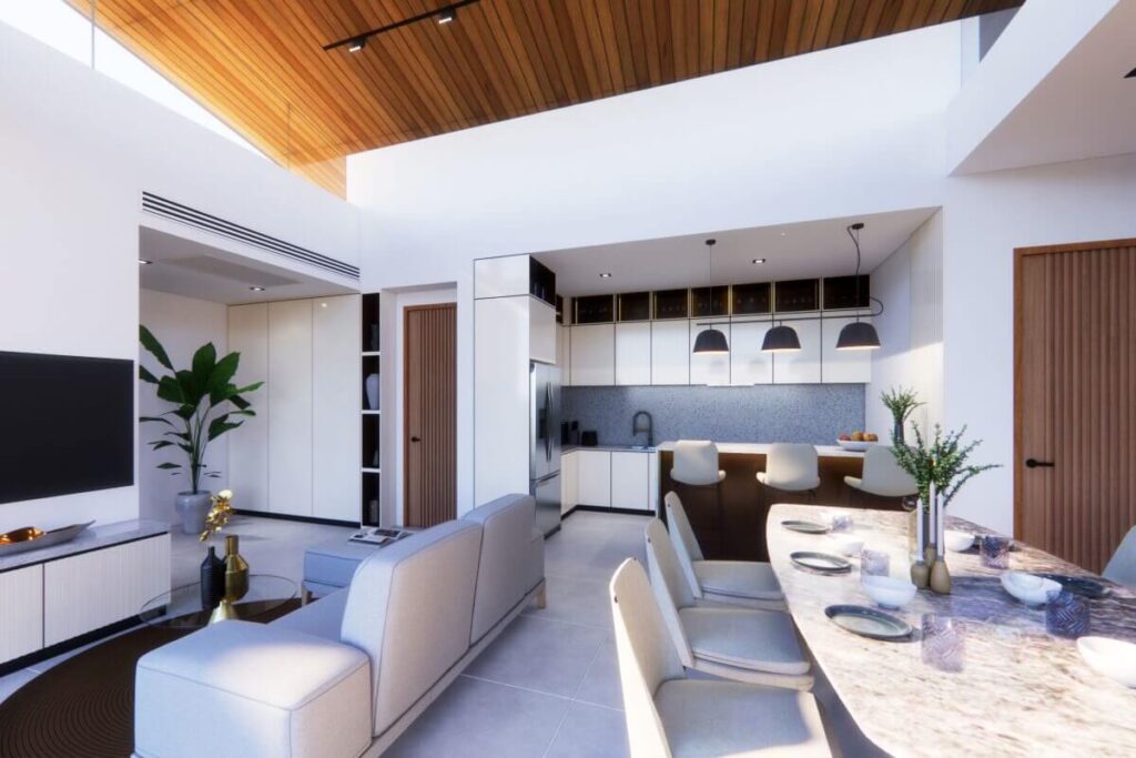 Each villa follows a U-shaped layout built around a private swimming pool, allowing natural light and ventilation into all main living spaces. The interiors feature high ceilings that enhance brightness and airiness, creating an inviting atmosphere suited for both permanent living and holiday use.