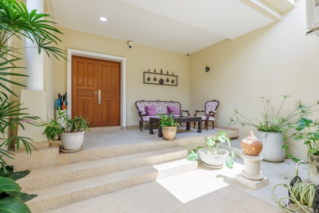 The interior has been updated with subtle Sino-Portuguese influences that give the property a distinctive character. Large floor tiles, dark furnishings and a neutral beige palette are complemented by accents of colour in the armchairs, cushions and artwork. The overall result is a comfortable and well-presented living space suited to both residential use and ownership as an investment property within the Laguna community.