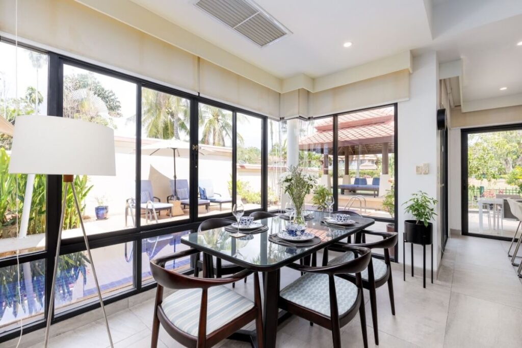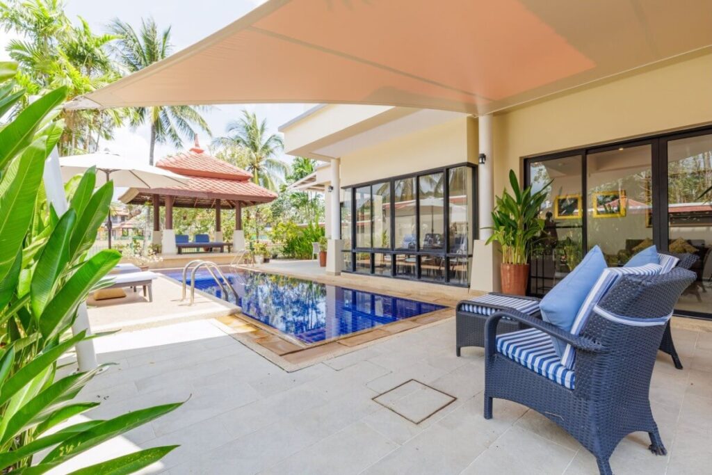 Overlooking the lagoon within the Laguna Phuket community, this renovated 3-bed pool villa offers 493 sqm of built-up living space across two levels and sits on a 480 sqm land plot within a professionally managed resort environment.
