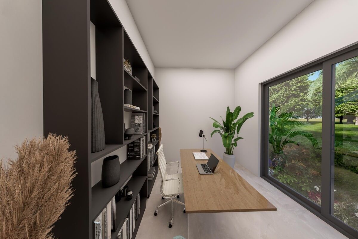 Each villa offers 310 sqm of internal space and a total built area of 550 sqm. The layout includes three ensuite bedrooms, two guest bathrooms, a private office, staff quarters, and a laundry room. The living and dining areas flow onto a large covered terrace, creating a seamless connection between indoor and outdoor spaces. Buyers have the option to add a 65 sqm multipurpose area suitable for a home gym, spa, or media room.