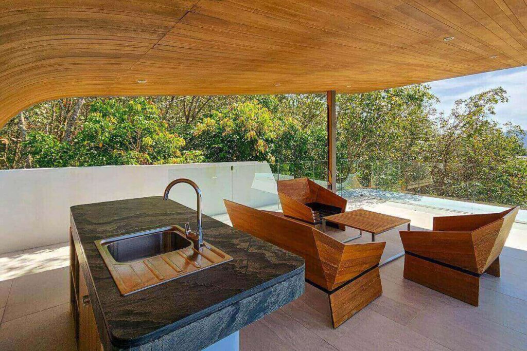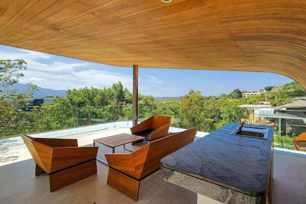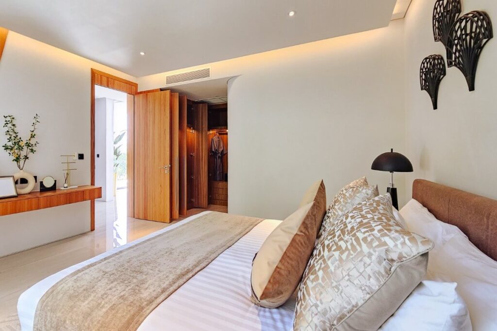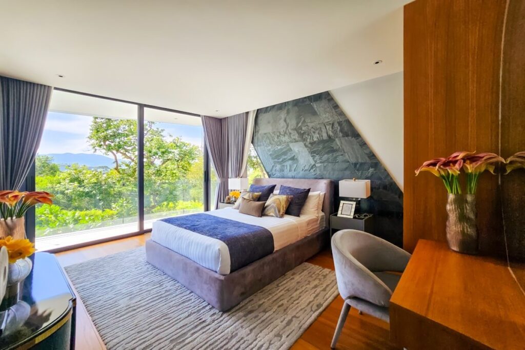 Each bedroom is spacious and well-appointed, with en-suite bathrooms and direct access to the outdoor living areas. The villa’s elevated position captures 360-degree mountain views, offering privacy and a tranquil atmosphere.