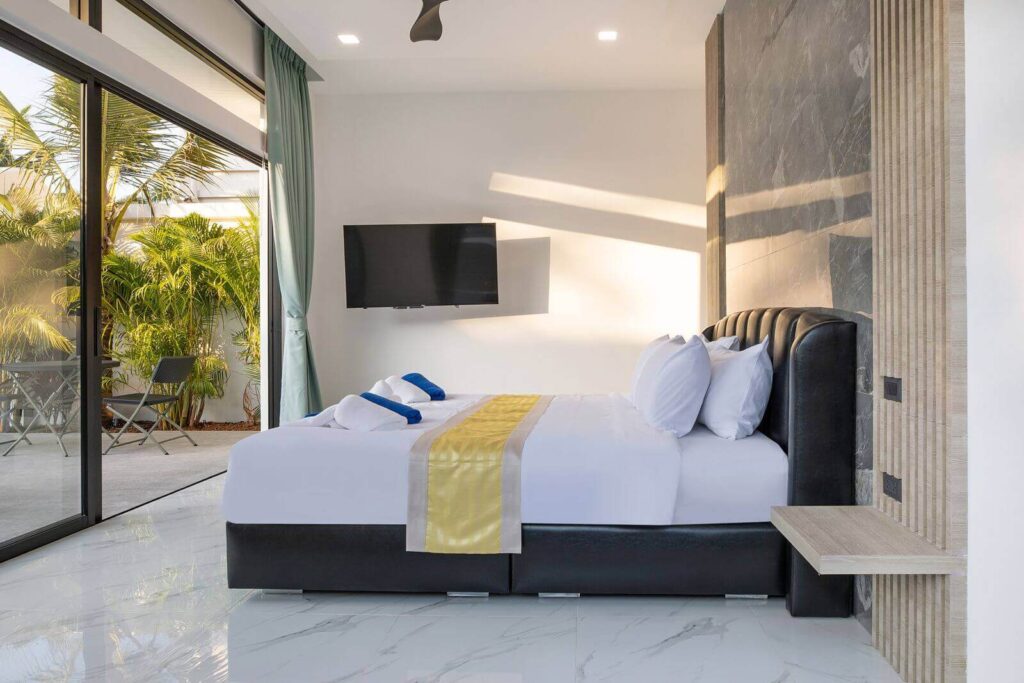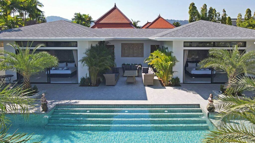 This modern Asian-style pavilion garden pool villa features four bedrooms and sits on an 800 sqm freehold land plot close to Rawai Beach Road, completed in 2024.