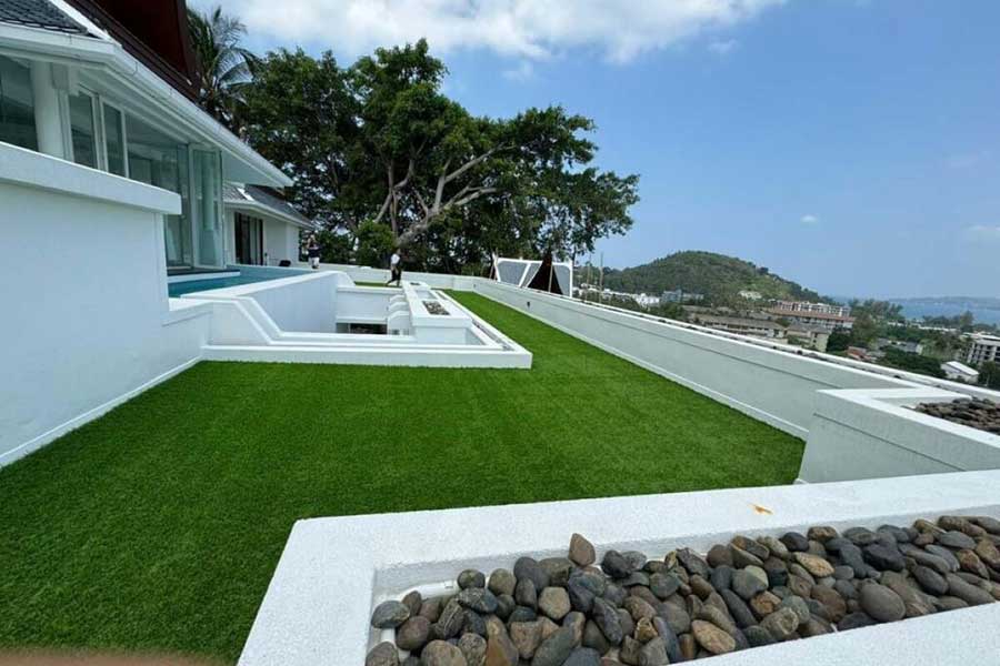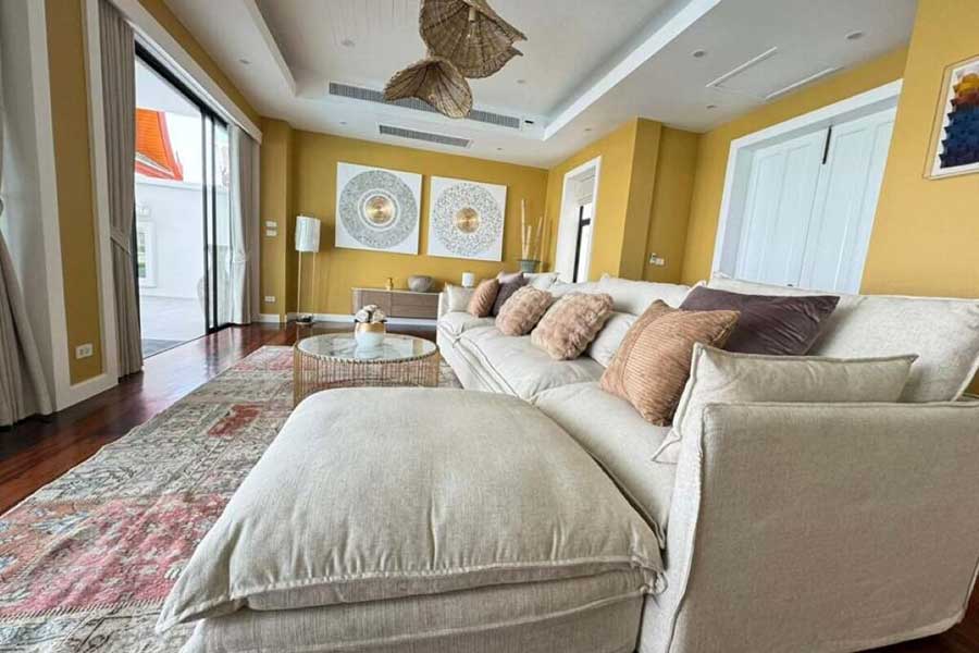 The property is located within a well established hilltop estate completed in 2005 by a long standing Phuket developer with multiple completed residential projects in Surin. The community contains 23 villas with three to five bedroom layouts and a consistent Thai contemporary architectural style. It remains a quiet, secure and well regarded neighbourhood.