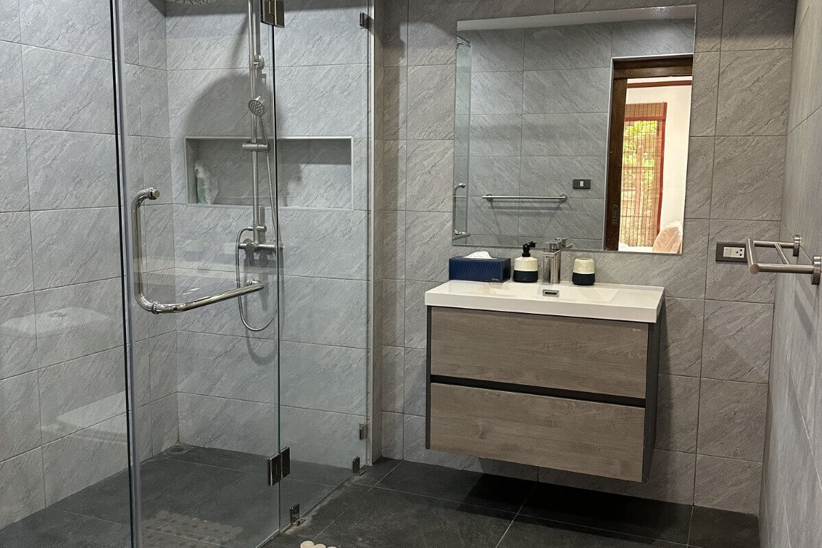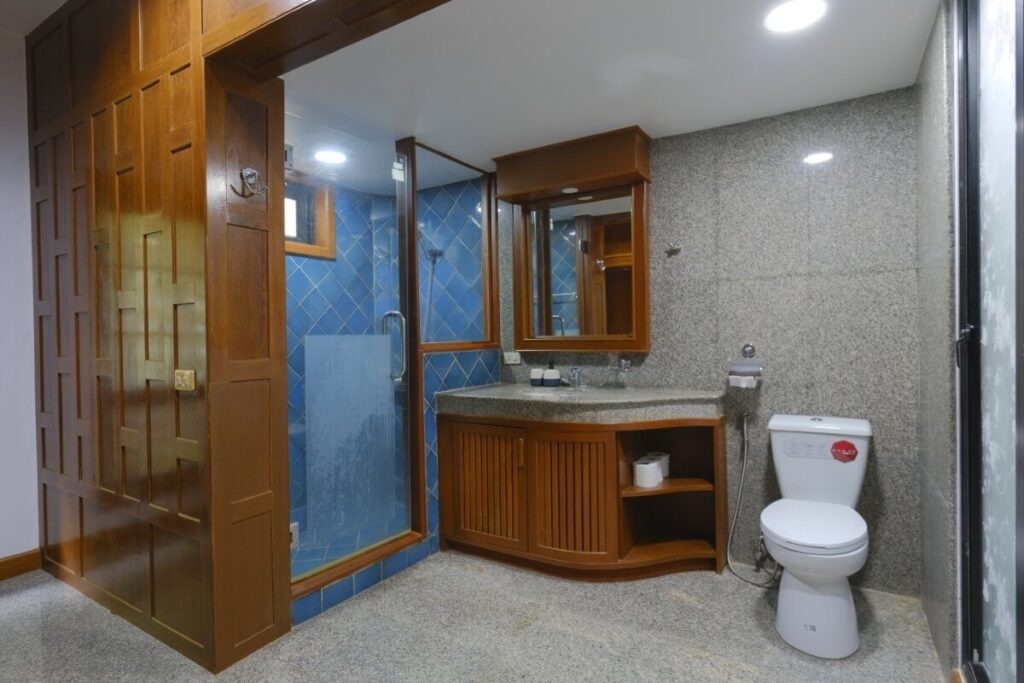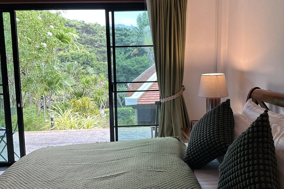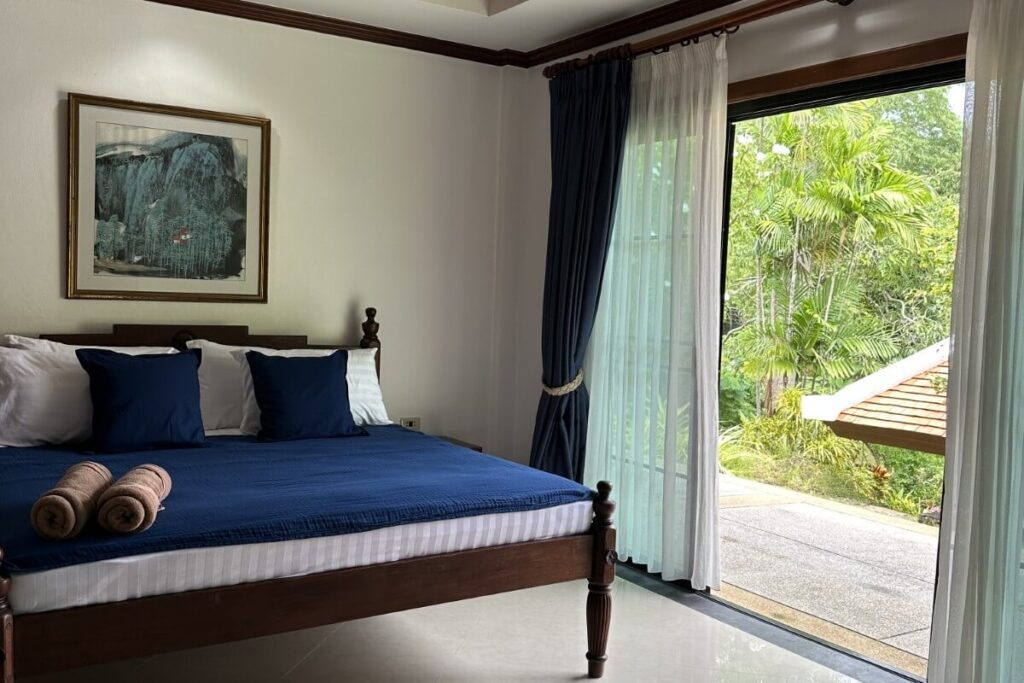 Nai Harn remains one of Phuket’s most walkable residential areas. The villa is set around 2.3 km from Nai Harn Beach and Nai Harn Lake, placing both within a short drive or manageable walk. The lake features a jogging path and central island, while nearby streets offer restaurants, cafes, shops, and everyday amenities. Phuket International Airport is approximately 1 hour and 10 minutes away by car.