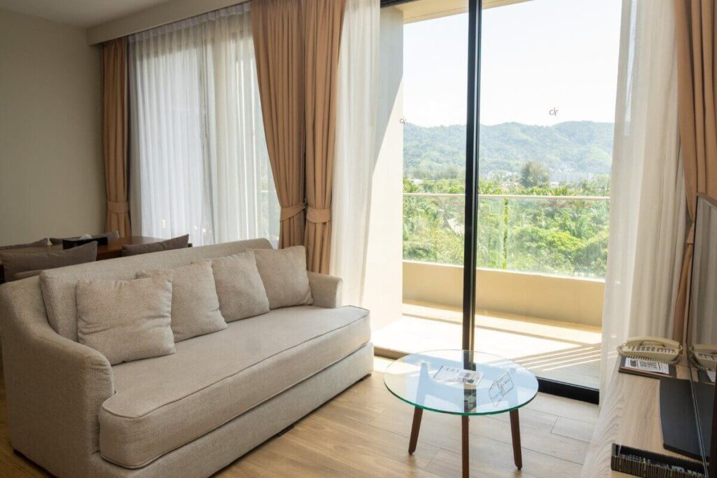 Located within a resort-style development near Bang Tao Beach, this 2-bed condo is offered as foreign freehold and sits on the 6th floor with views towards the surrounding mountains.