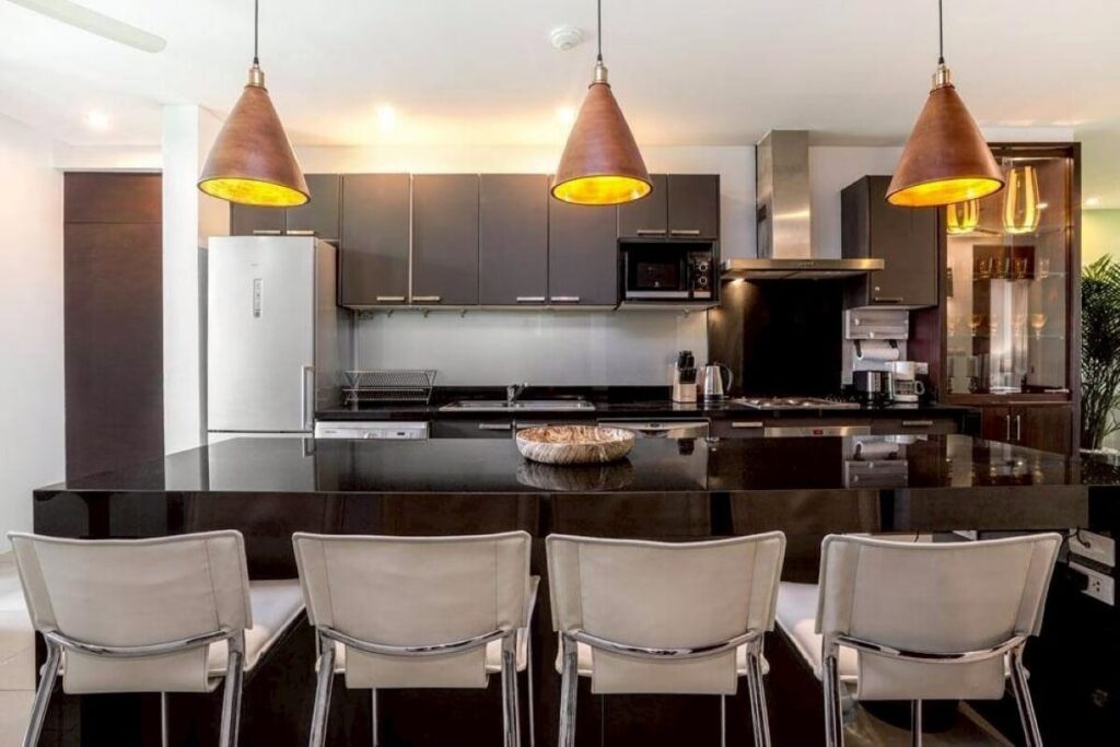 Restaurants and beach clubs are directly on the sand at Bang Tao Beach, with Laguna accessible along the shoreline. Within a 5-10 minute walk are hotels, convenience stores, and restaurants, with a five-minute drive reaching Catch Beach Club and a wider selection of bars, cafes, massage shops, Muay Thai gyms, and everyday conveniences. Lotus’s Supermarket, Porto de Phuket, Boat Avenue, and Laguna are all within 5-10 minutes. Phuket International Airport is approximately 20 km, around 35 minutes by road.