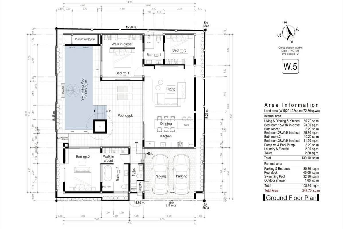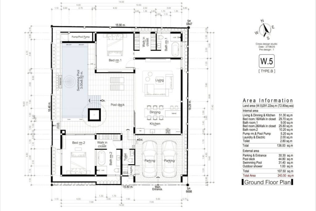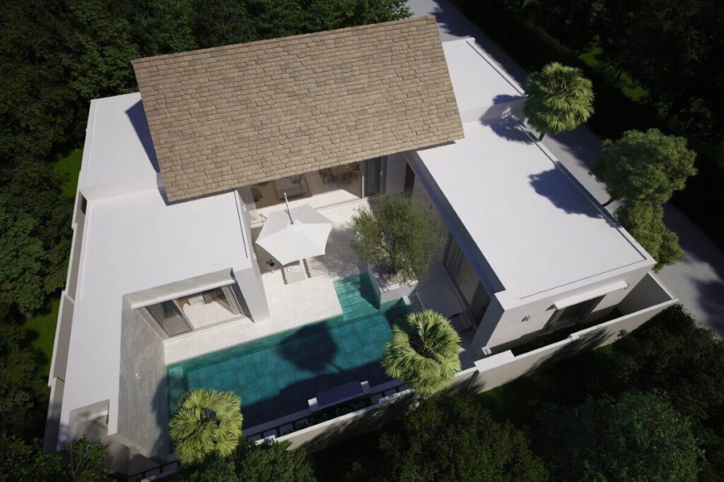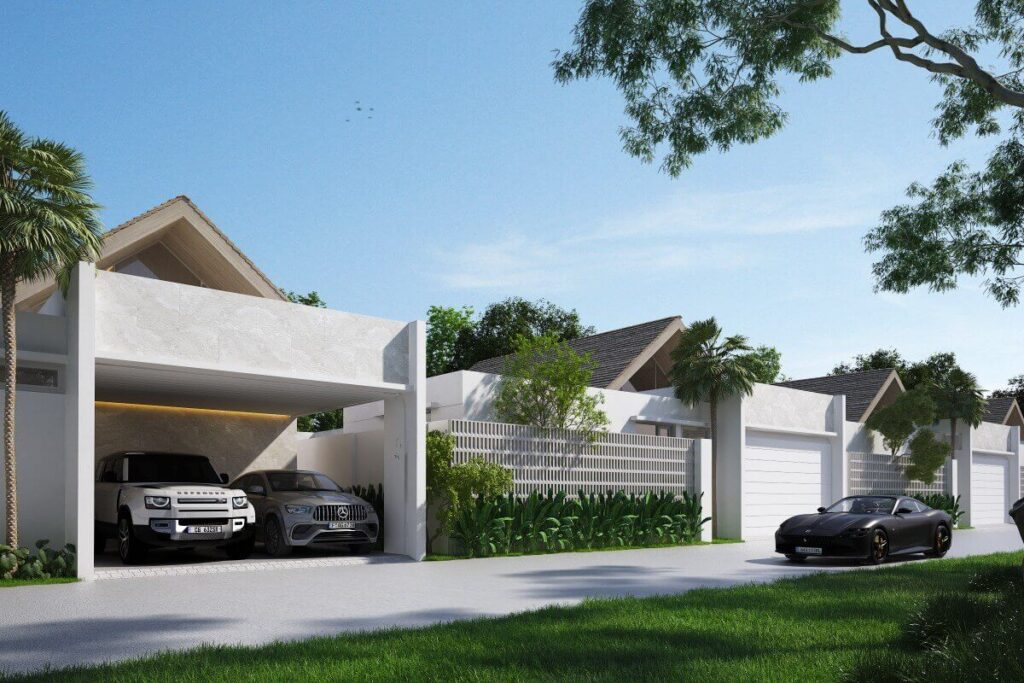 The villa includes covered parking for two cars and is offered as part of a boutique project of just five pool villas. Each villa is delivered with two bedrooms and the option to convert to three. The developer has completed multiple residential projects across Pasak, Pru Jampa, Ban Don, and Cherng Talay, bringing established local construction experience to the project.