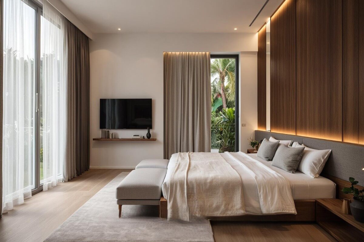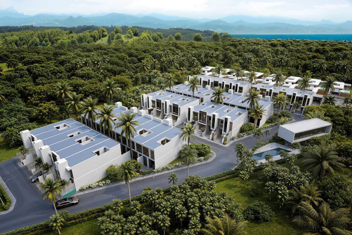 Both property types share the same design language – warm wood finishes and soft sandstone tones giving a feel that is compact but considered. Shared facilities across the development include a communal pool, gym, sauna, meeting room, and kids club. The developer, established in 2019 and based in Phuket, has delivered multiple phases of modern Thai-Balinese pool villas, primarily in the Nai Thon area, and currently has two offplan developments running in Cherng Talay. Construction on this project is scheduled to begin in December 2027.