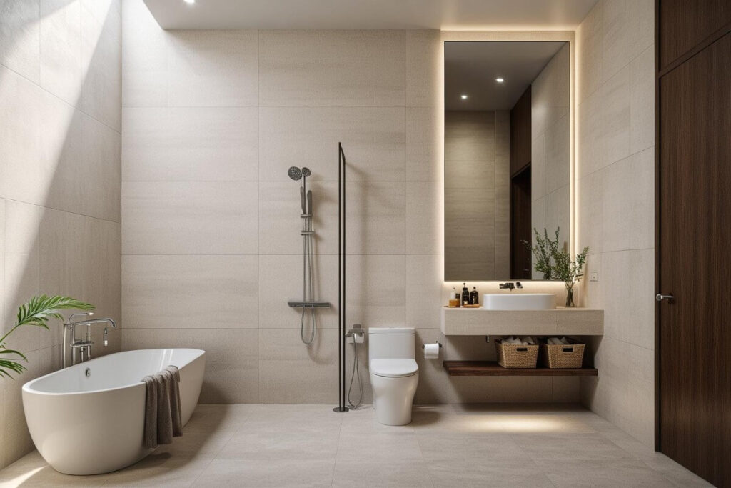 • Warm Wood & Sandstone Finishes