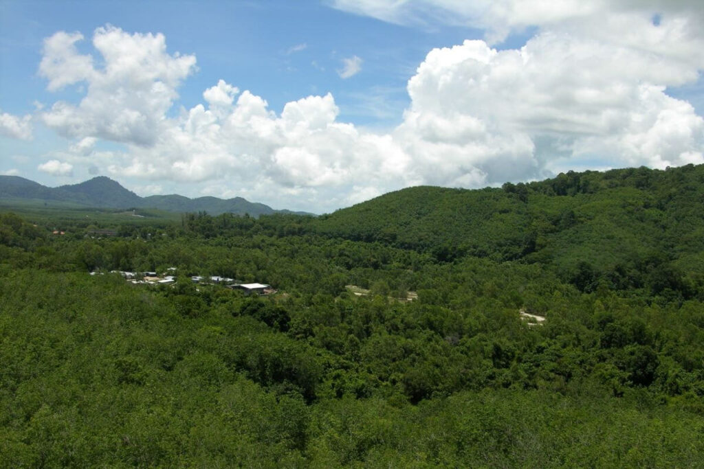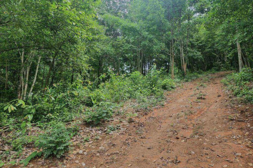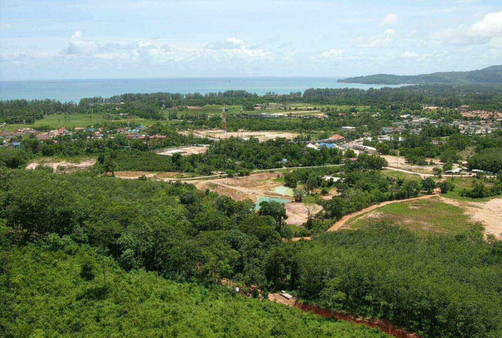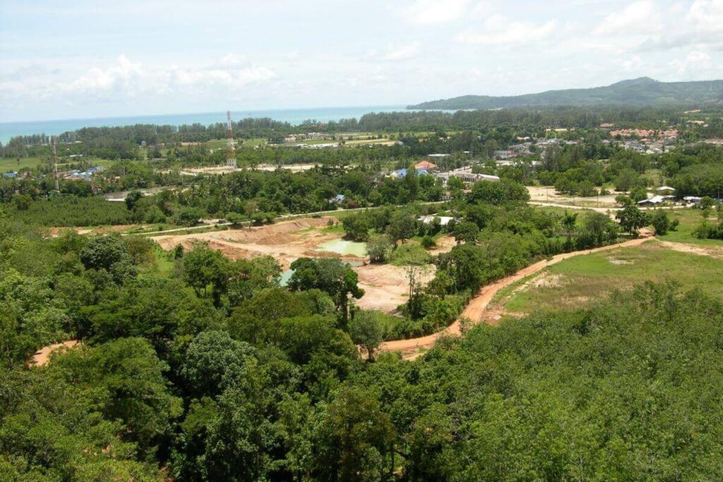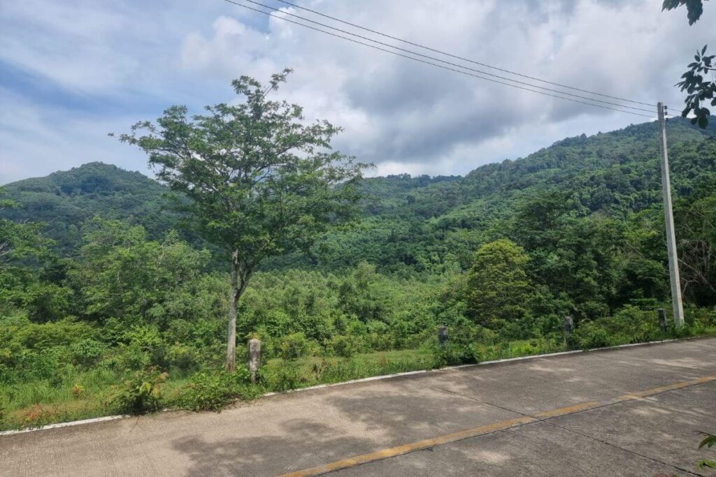 Set on the hills behind Cherng Talay, this west-facing hillside plot captures sweeping valley views and vivid Phuket sunsets from its 67-metre elevation. The 9,280 sqm (approximately 6 Rai 55 sq wah) parcel slopes gently and sits beside a newly built 6-metre concrete road, providing easy access and development readiness.