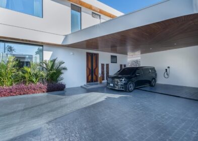 Set on two combined plots, this villa is the largest in the estate. It features expansive open-plan living and dining areas with double-height ceilings, seamlessly integrating indoor and outdoor spaces. Floor-to-ceiling glass doors provide abundant natural light and direct access to a private garden, pool terrace, and outdoor entertainment area.