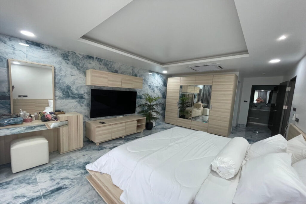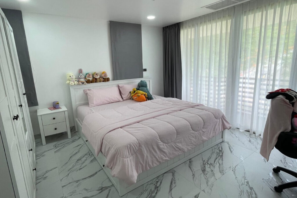 Just a five-minute walk from the shoreline, this duplex penthouse in Kamala has been completely stripped back and rebuilt by the owner to a high standard, offered fully furnished and foreign freehold. The unit spans 280 sqm across two levels and sits within a boutique four-storey development of just 31 units, completed in December 2009, giving it a more private residential character than larger resort-style buildings along this stretch of coast.