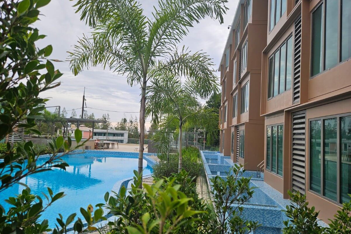 The project comprises 15 low-rise buildings, each rising four storeys, with a total of 432 units. Unit types range from studios to one-bedroom layouts, with sizes between 28 and 38 sqm. Construction began in 2019 and has now been completed.