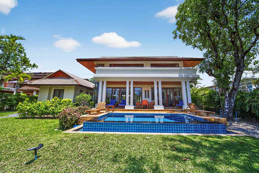 Ownership is held under Thai freehold via company structure, with the property completed in 2002. The combination of plot size, golf frontage, and position within Laguna places this villa within a limited supply segment of the Phuket market, suitable for both long-term residence and investment.