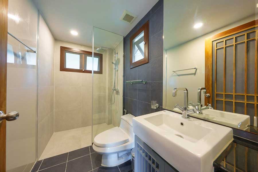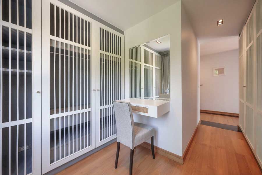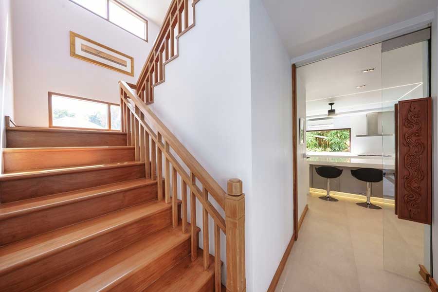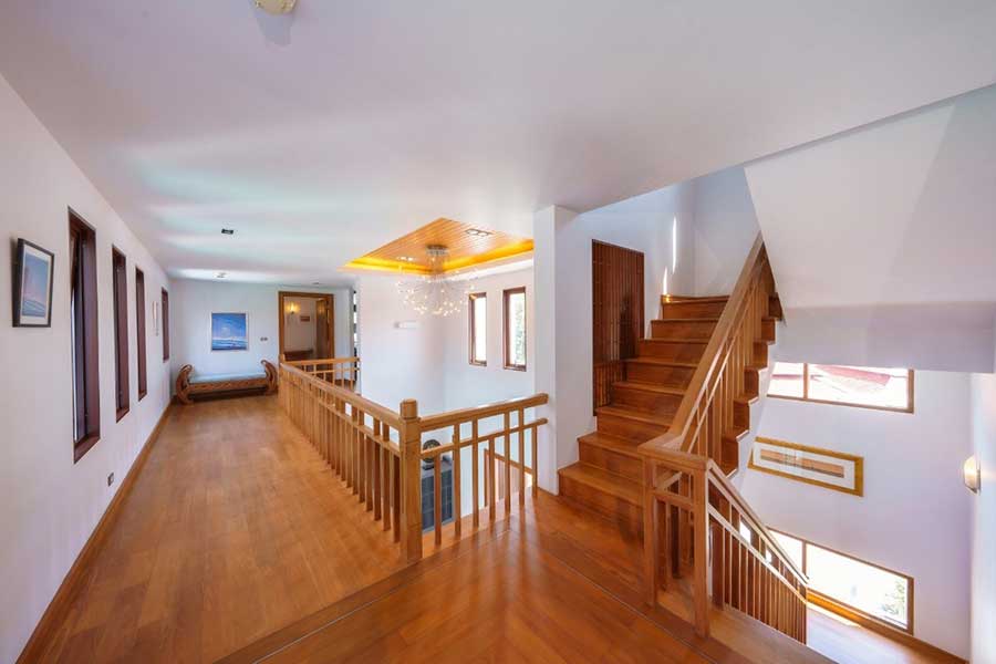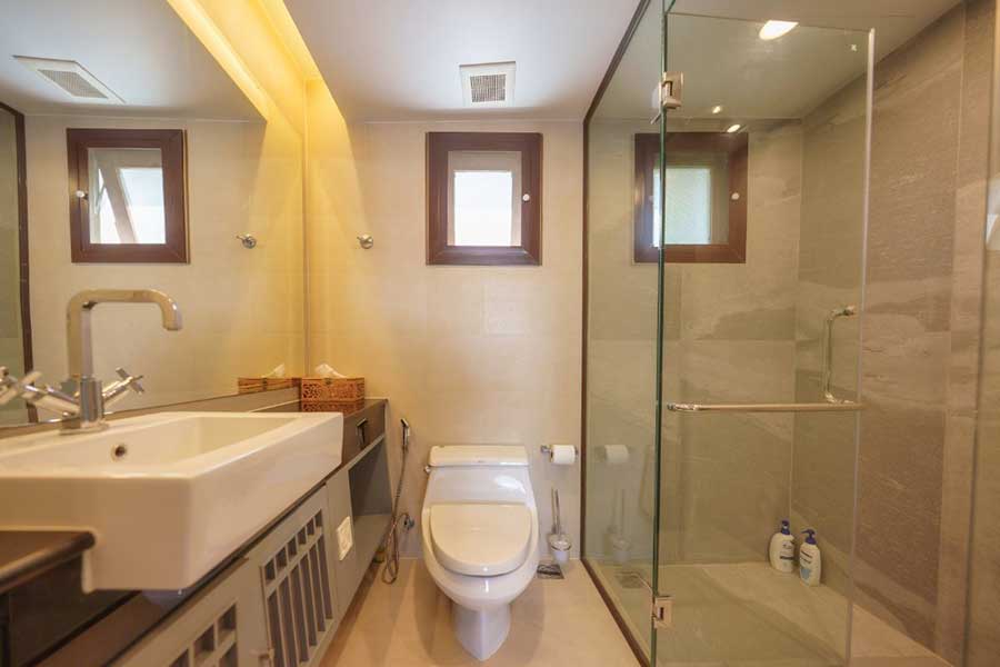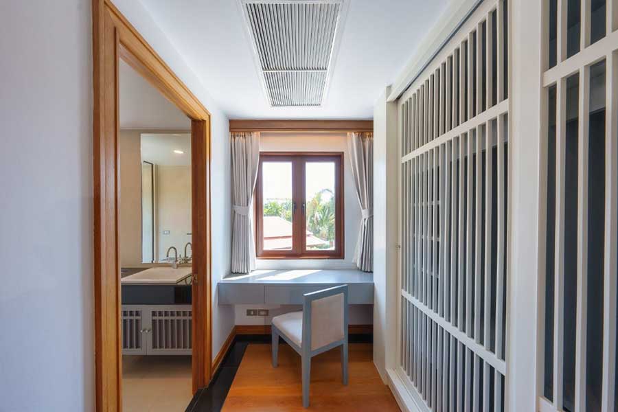 The property includes infrastructure features such as a backup electrical generator, dual water supply from both government and marina sources, and full connectivity throughout. Construction materials include teak flooring across bedrooms and circulation areas, along with powder-coated window systems fitted with sliding mosquito screens.