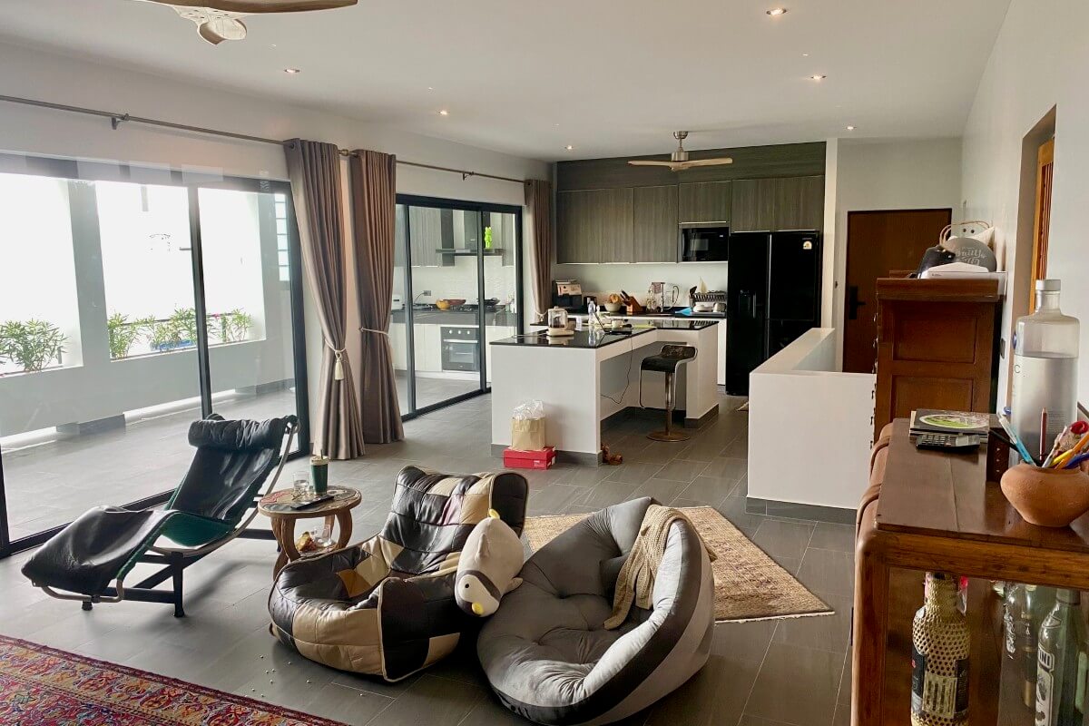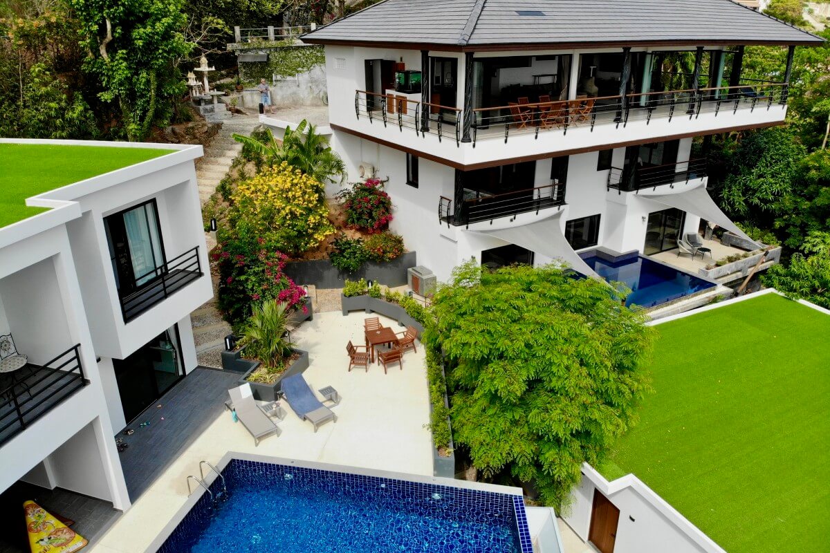 Set on a large 1,600 sqm hillside plot in Nai Harn, this standalone multi-residence villa estate comprises three separate villas and one apartment, offering a combined built-up area of 920 sqm. The configuration allows the residences to function independently within a single property boundary, making it suitable for owner occupation alongside rental use while maintaining separation between units.