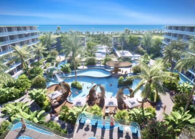 The architectural design harmonizes with Phuket’s stunning natural scenery, incorporating large glass panels and bold, angular designs that invite the serene outdoors into the living spaces. Private balconies offer expansive views of the surrounding mountains, gardens, or the Laguna Phuket Complex. The lush inner courtyard, complete with swimming pools and tropical flora, provides a peaceful retreat.