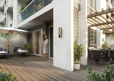 The apartment includes three bedrooms and three bathrooms, with 3-meter high ceilings creating a sense of openness. Floors are finished with solid Maka wood, while ‘Sun Paradise’ doors and windows maximize views and natural light. A well-equipped kitchen supports the open-plan living layout, and the unit comes fully furnished.