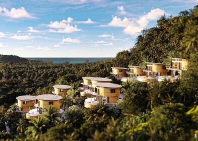 At the centre of each villa is a semi-indoor swimming pool that blends seamlessly with the open-plan living and kitchen space.