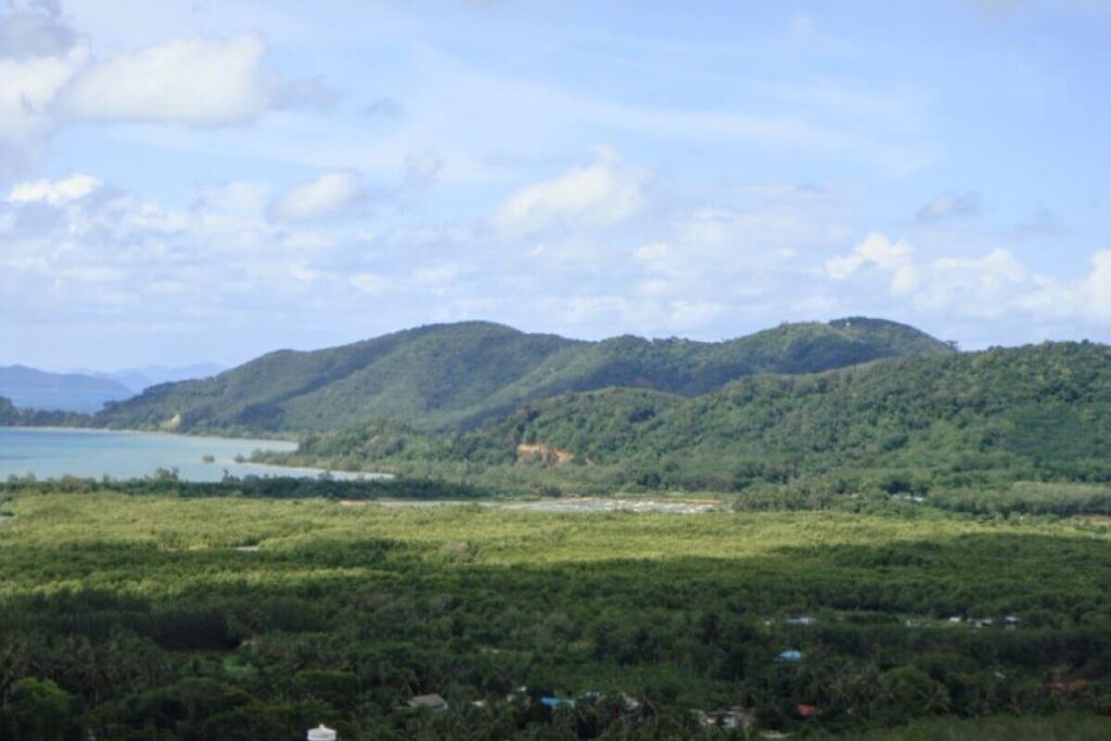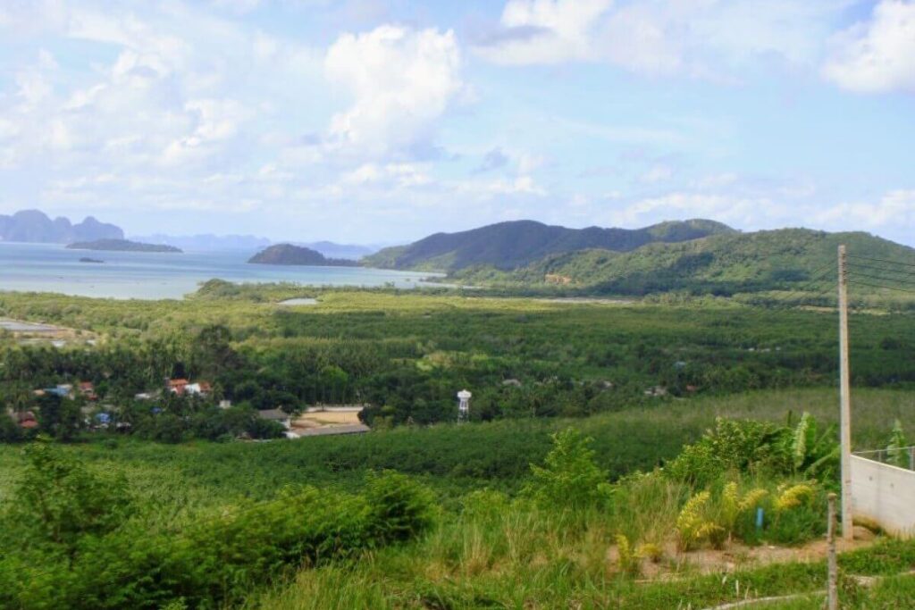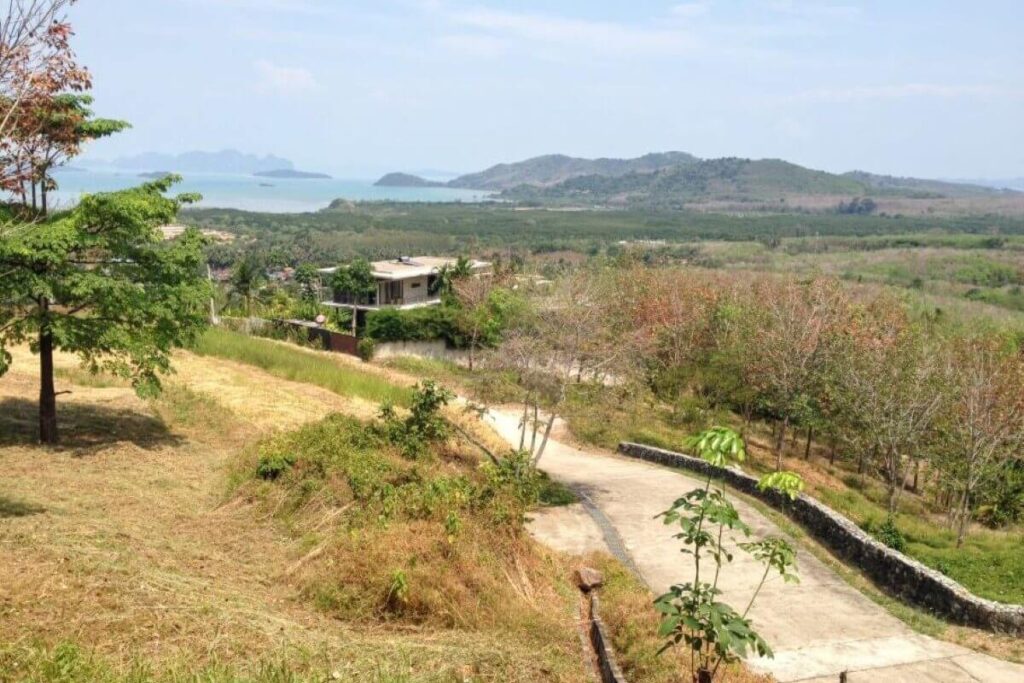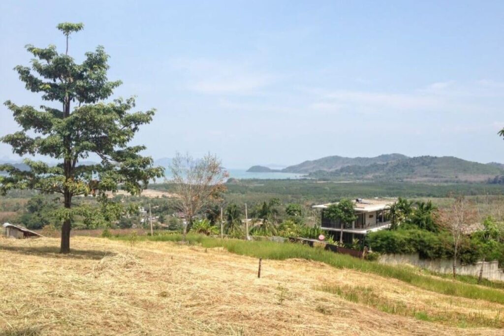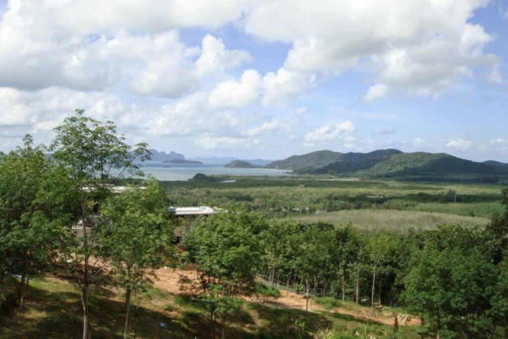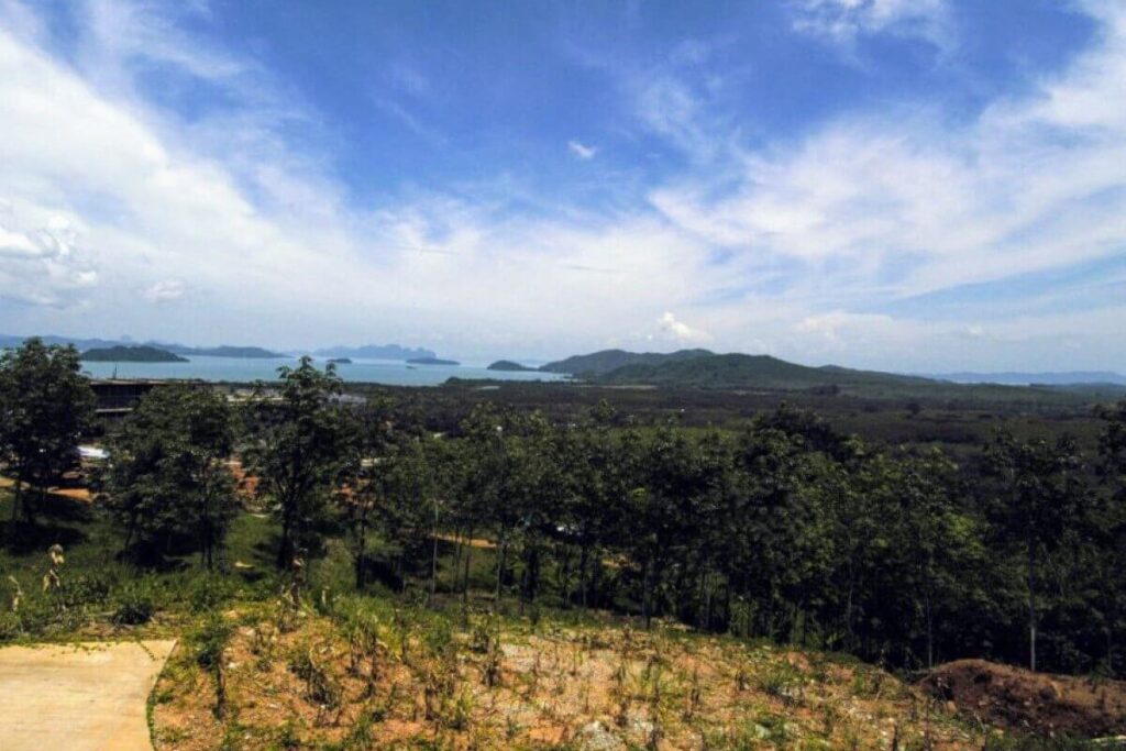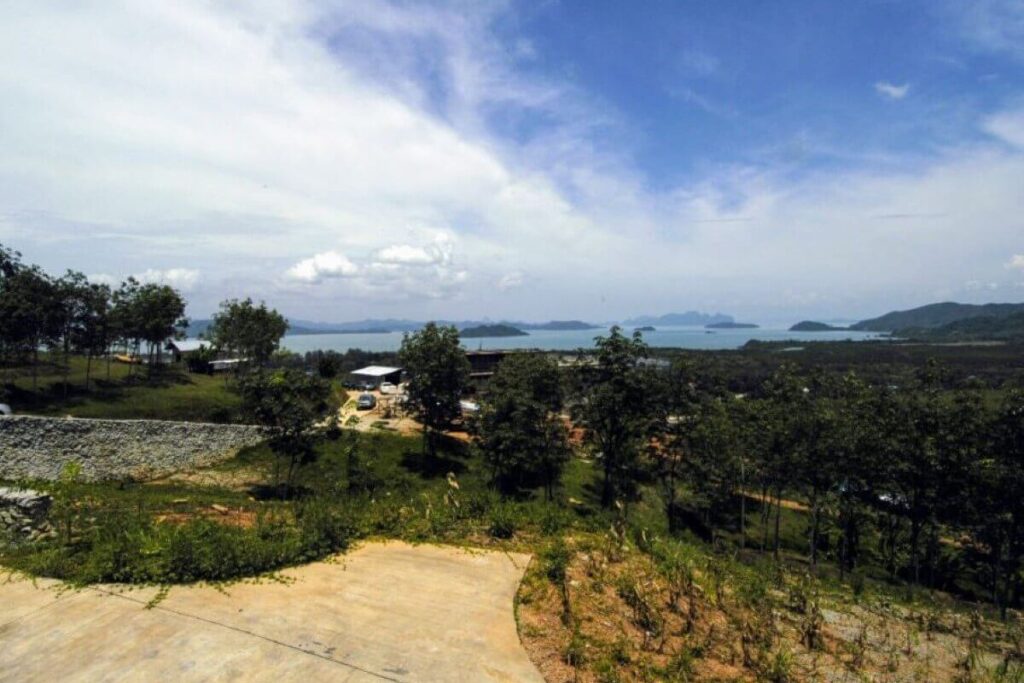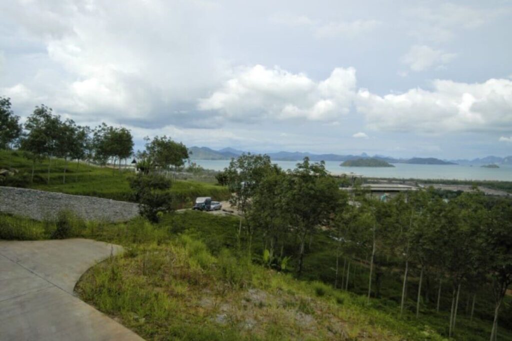 Set against the backdrop of a National Park with 180-degree sea views, this hillside parcel in Thalang offers both scale and infrastructure already in place. The property covers 17,920 sqm (around 11.2 Rai) and sits just a short drive from Mission Hills Golf Course and the marinas of Phuket’s northeast coast.